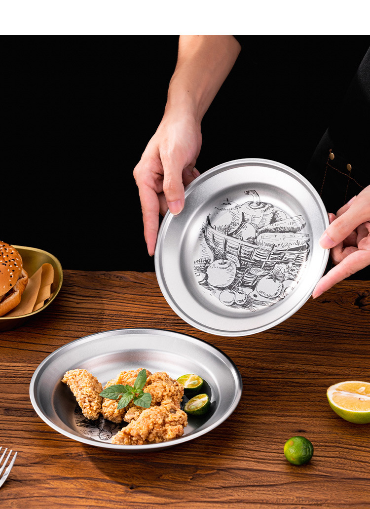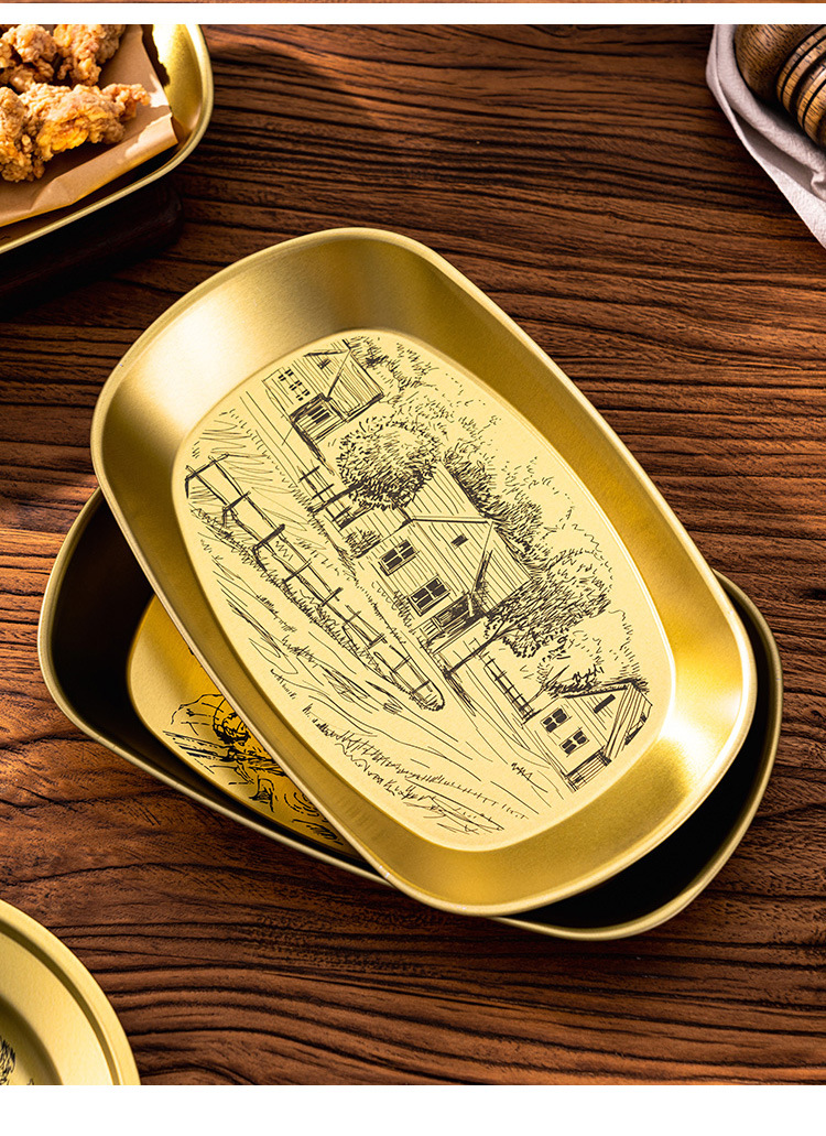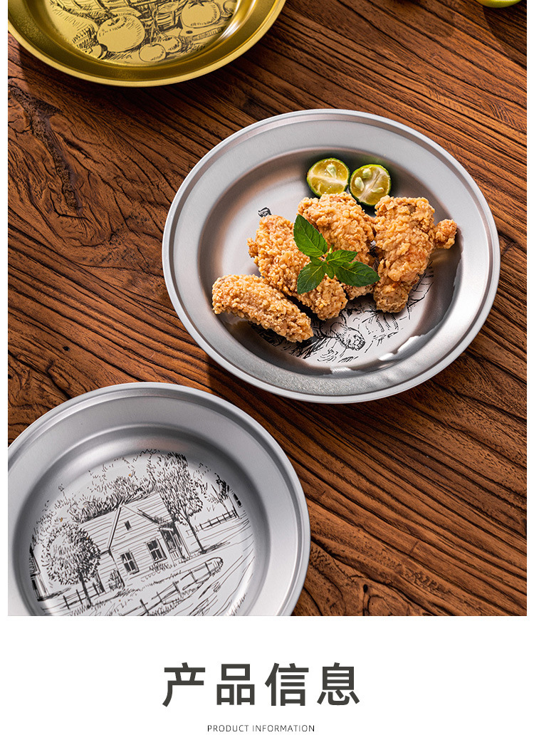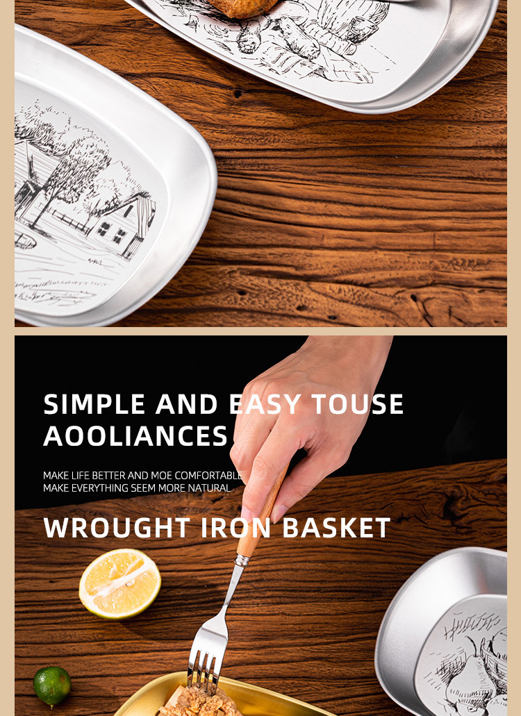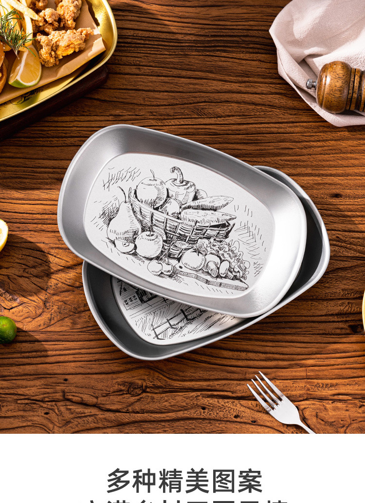 스테인레스 스틸 빈티지 틴플레이트 트레이 스낵 플레이트 상업용 디저트 플레이트 프라이드 치킨 바베큐 플레이트 과일 플레이트 요리 플레이트스토어 가기