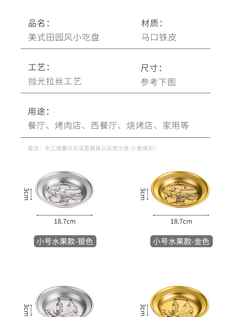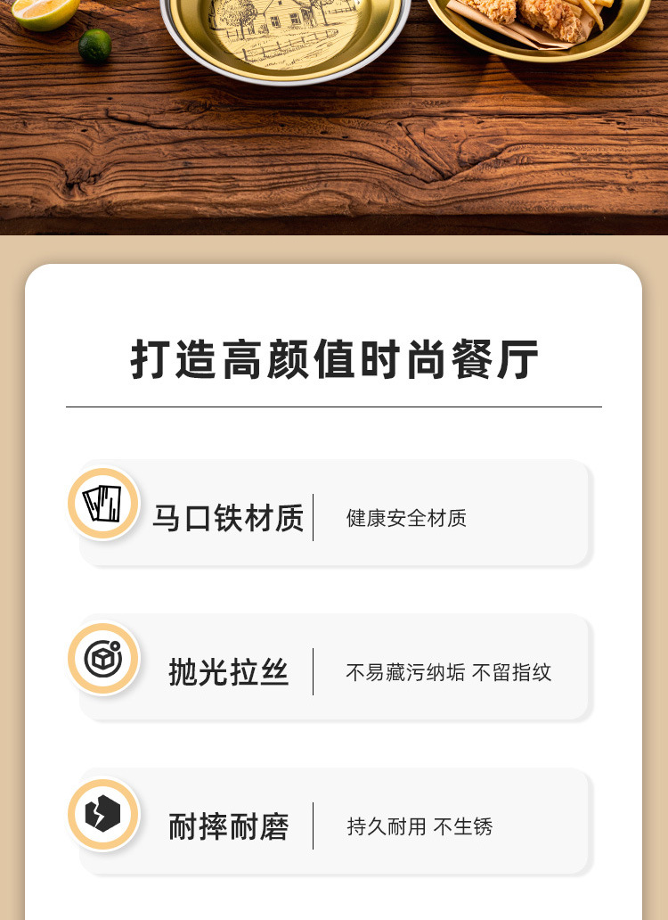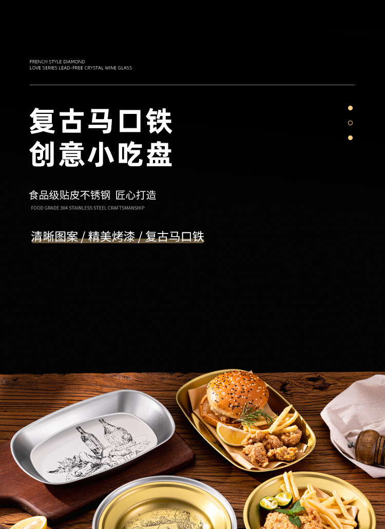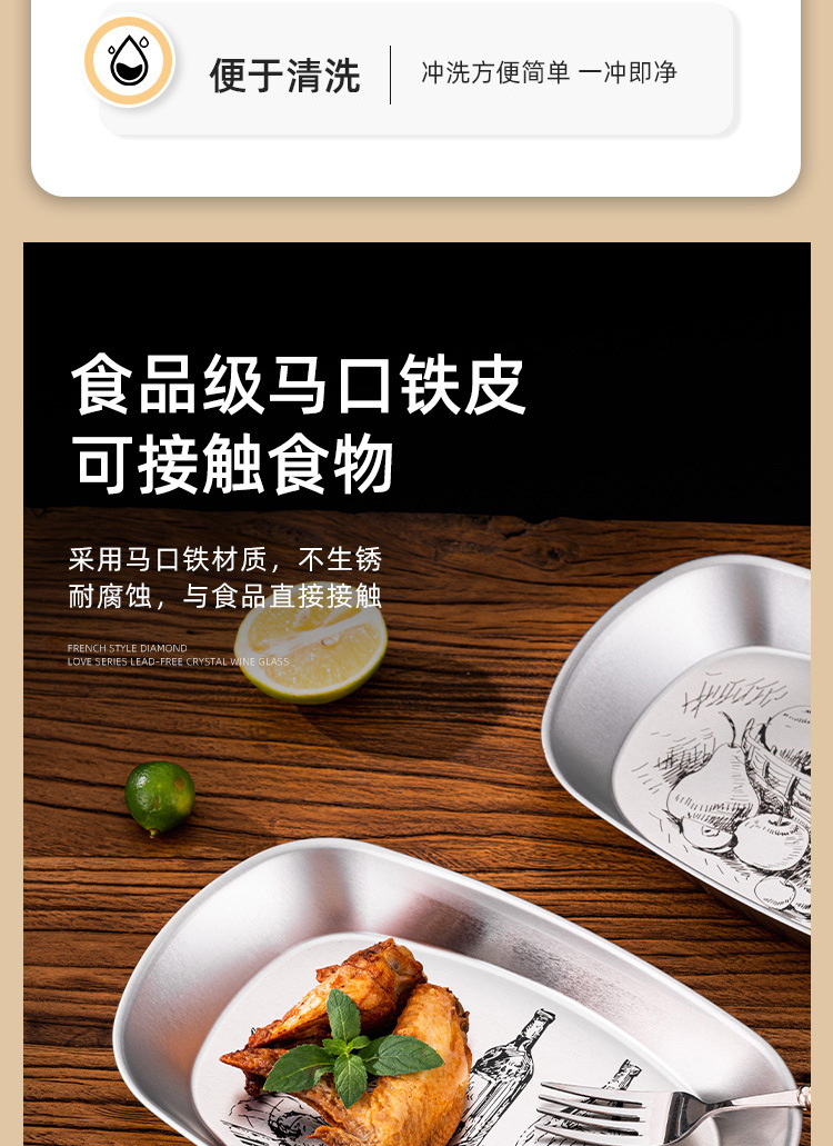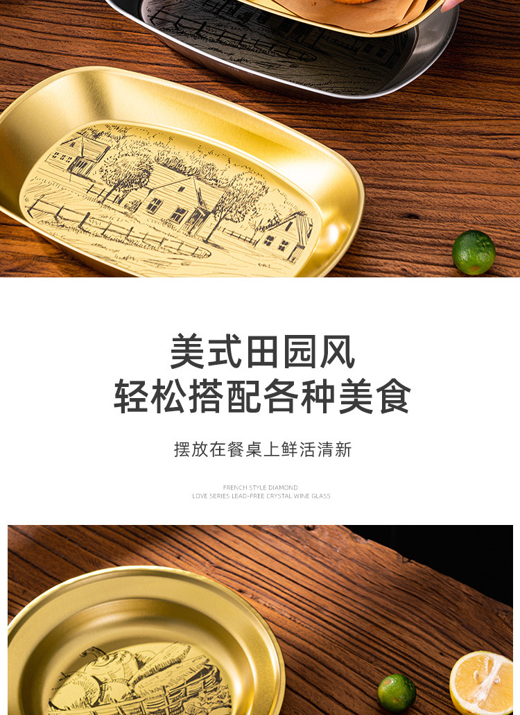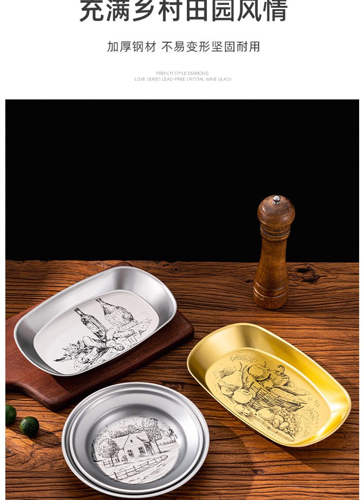스테인레스 스틸 빈티지 틴플레이트 트레이 스낵 플레이트 상업용 디저트 플레이트 프라이드 치킨 바베큐 플레이트 과일 플레이트 요리 플레이트스토어 가기