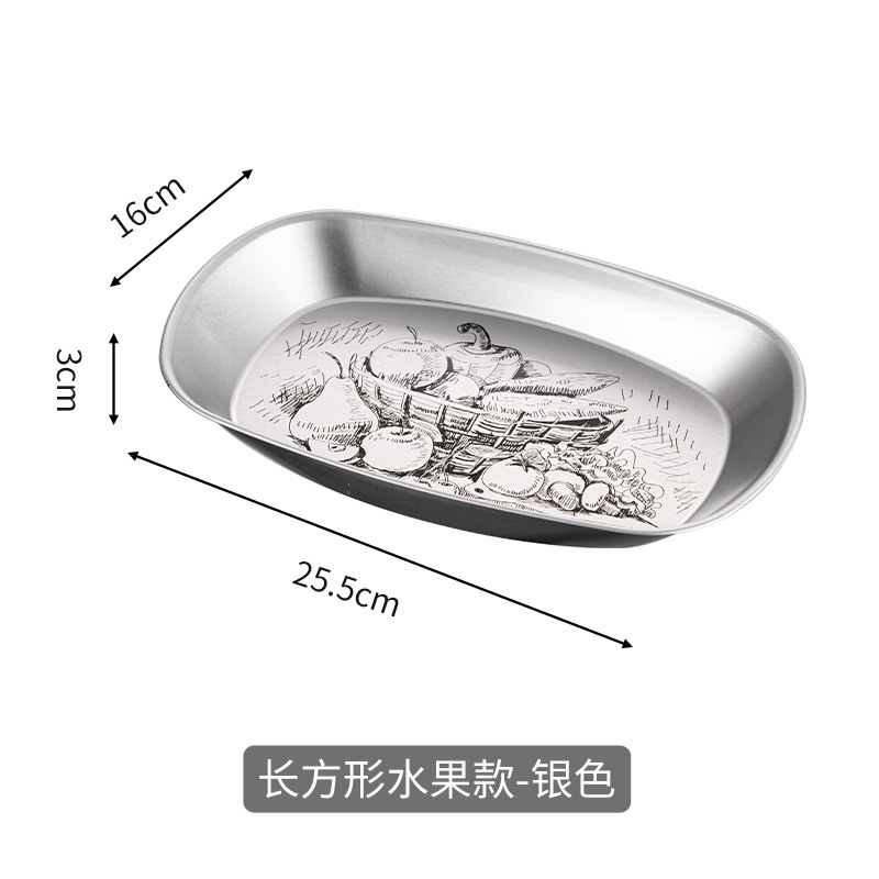 • 스낵 플레이트 직사각형 25*16cm 과일 및 야채 패턴 실버