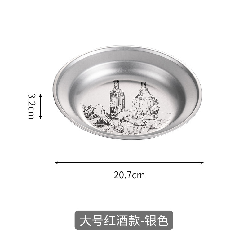 • 스낵 플레이트 라운드 20cm 레드 와인 패턴 실버