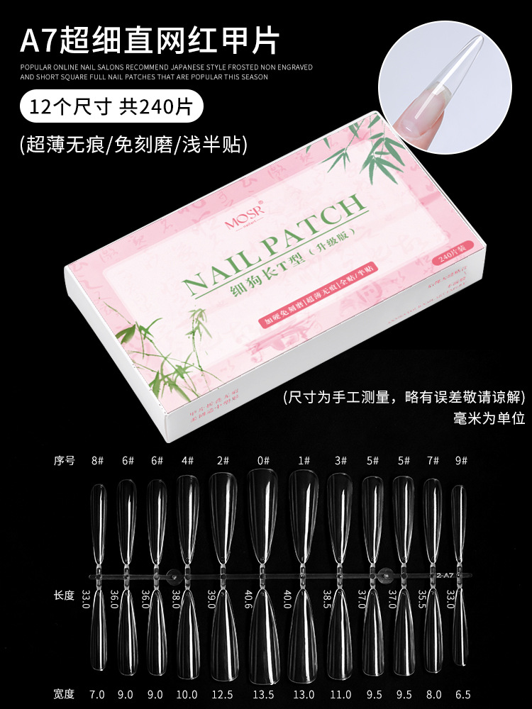 네일 피스 네일 아트 슈퍼 긴 뾰족한 갑옷 슬리밍 울트라 얇은 트레이스 웨어 아머 연장 네일 아트샵을위한 연삭 네일 패치