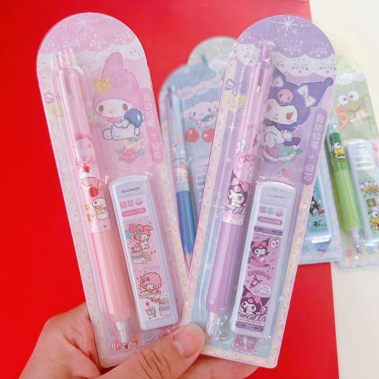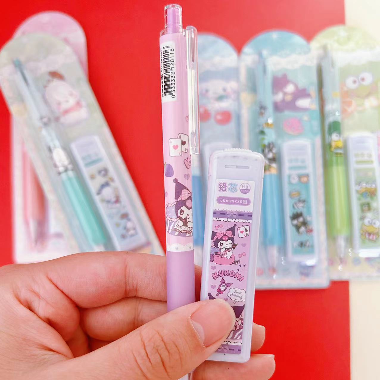 릴리 패밀리 자동 연필 세트 귀여운 쿠로로 인스 학생용 문구 0.5mm 무날카로운 샤프펜슬 심