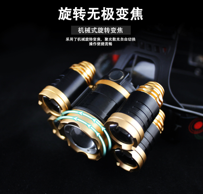 • BZM256 삼성 홀 충전 로타리 줌 유도 헤드 라이트 2 1200MAH18650 리튬 배터리 (골드)