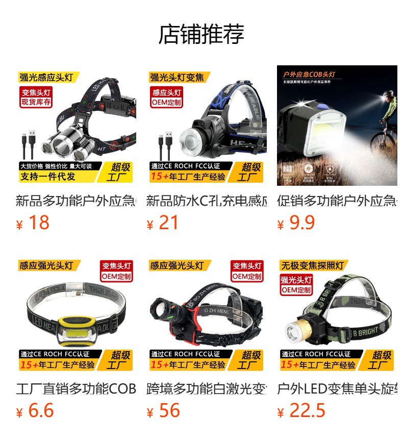 국경 간 야외 비상 방수 TYPE-C 충전 유도 헤드 라이트 긴 내구성 리튬 배터리 강한 조명 줌 낚시 헤드 라이트스토어 가기