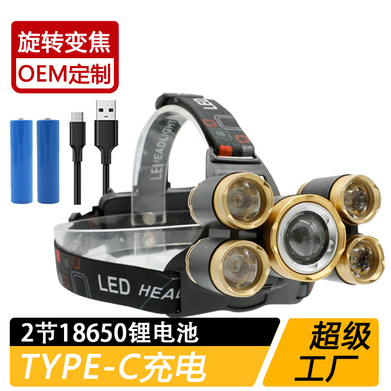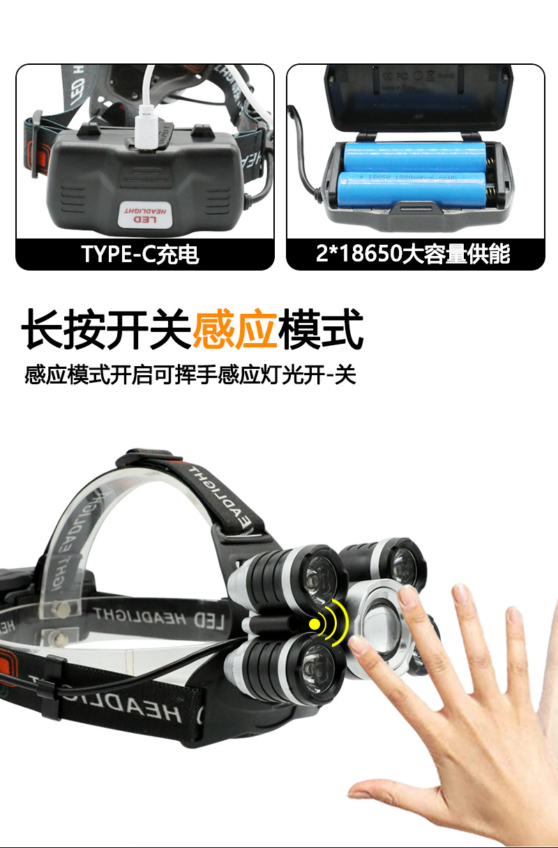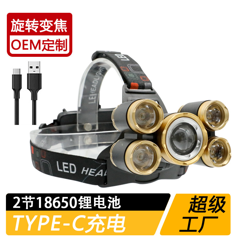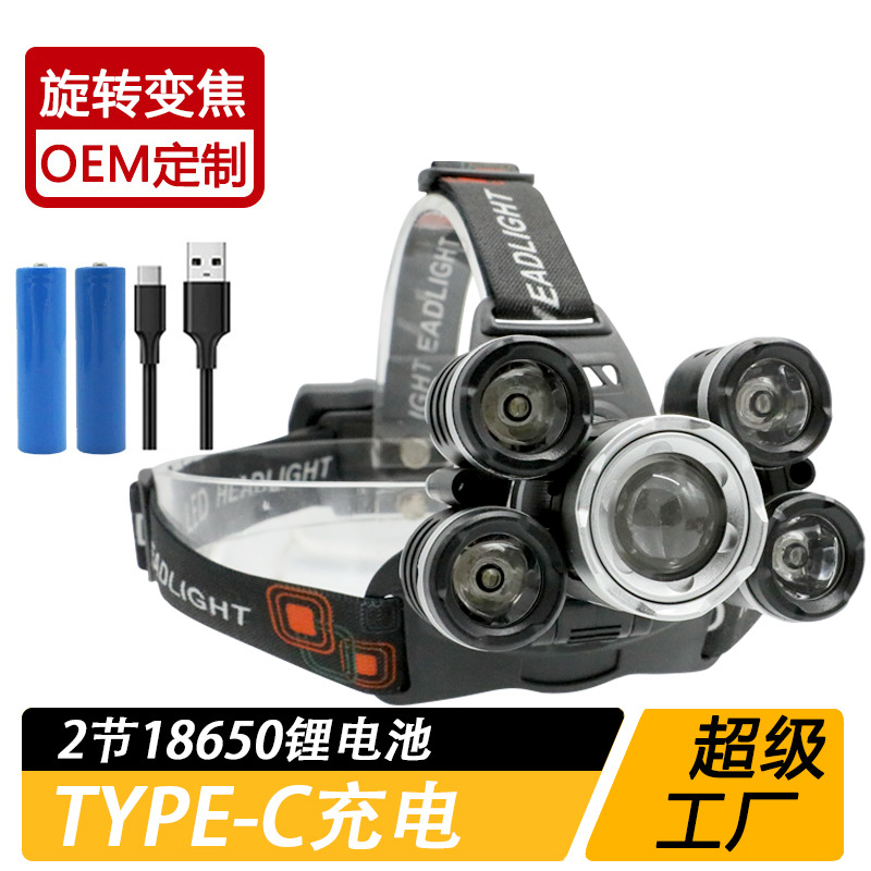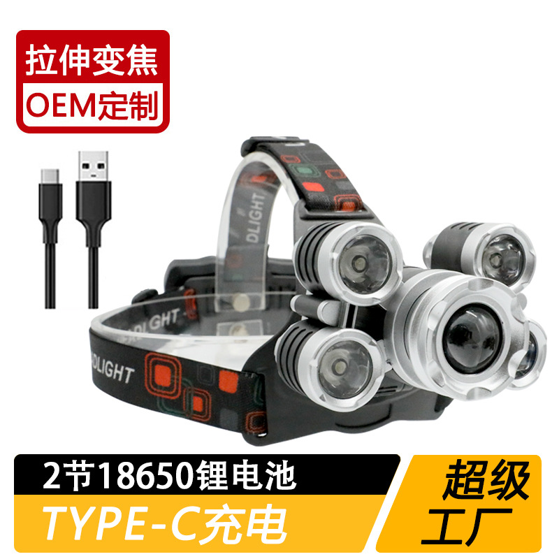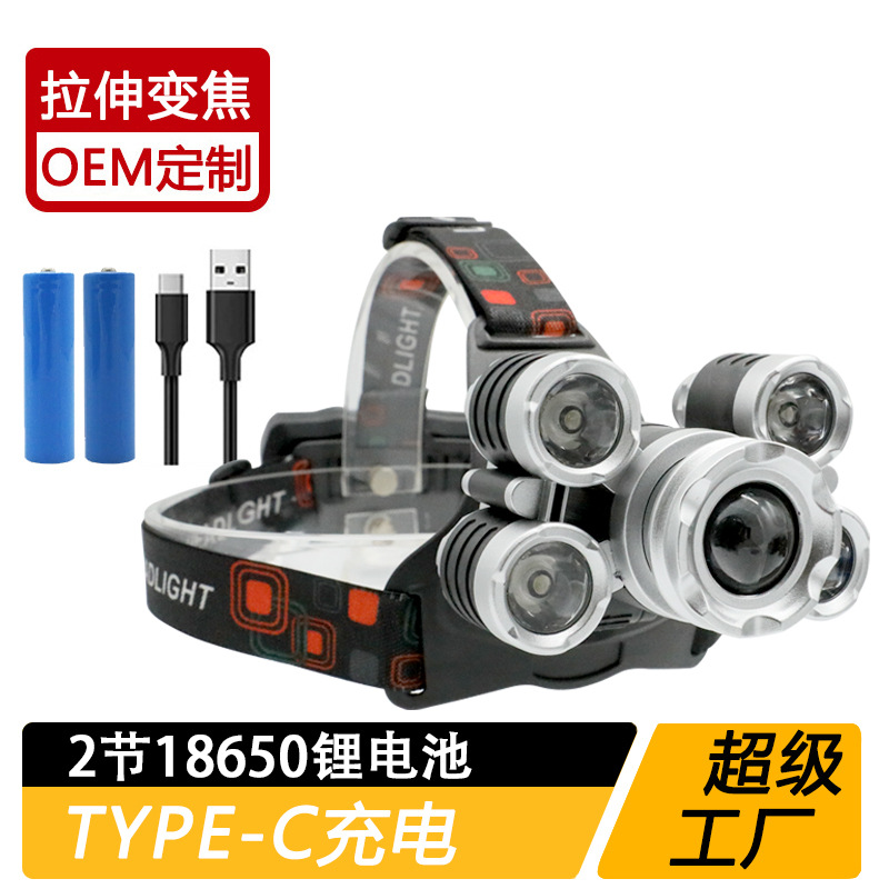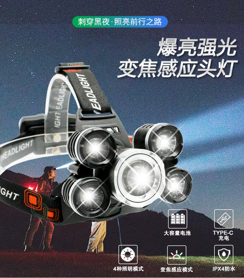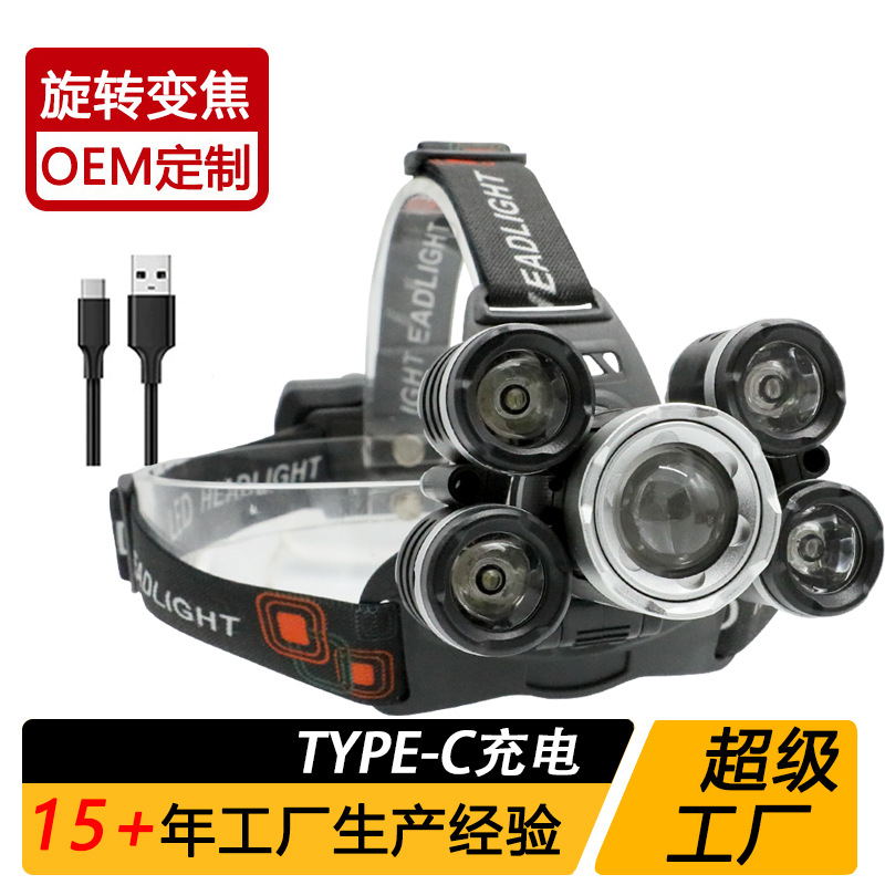 국경 간 야외 비상 방수 TYPE-C 충전 유도 헤드 라이트 긴 내구성 리튬 배터리 강한 조명 줌 낚시 헤드 라이트