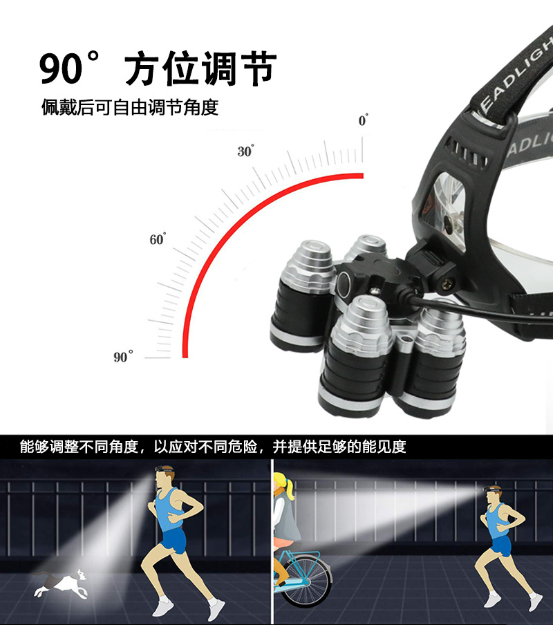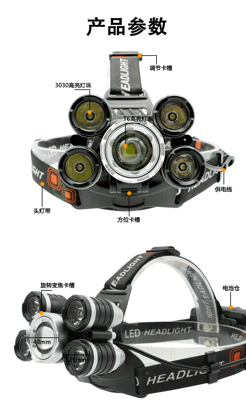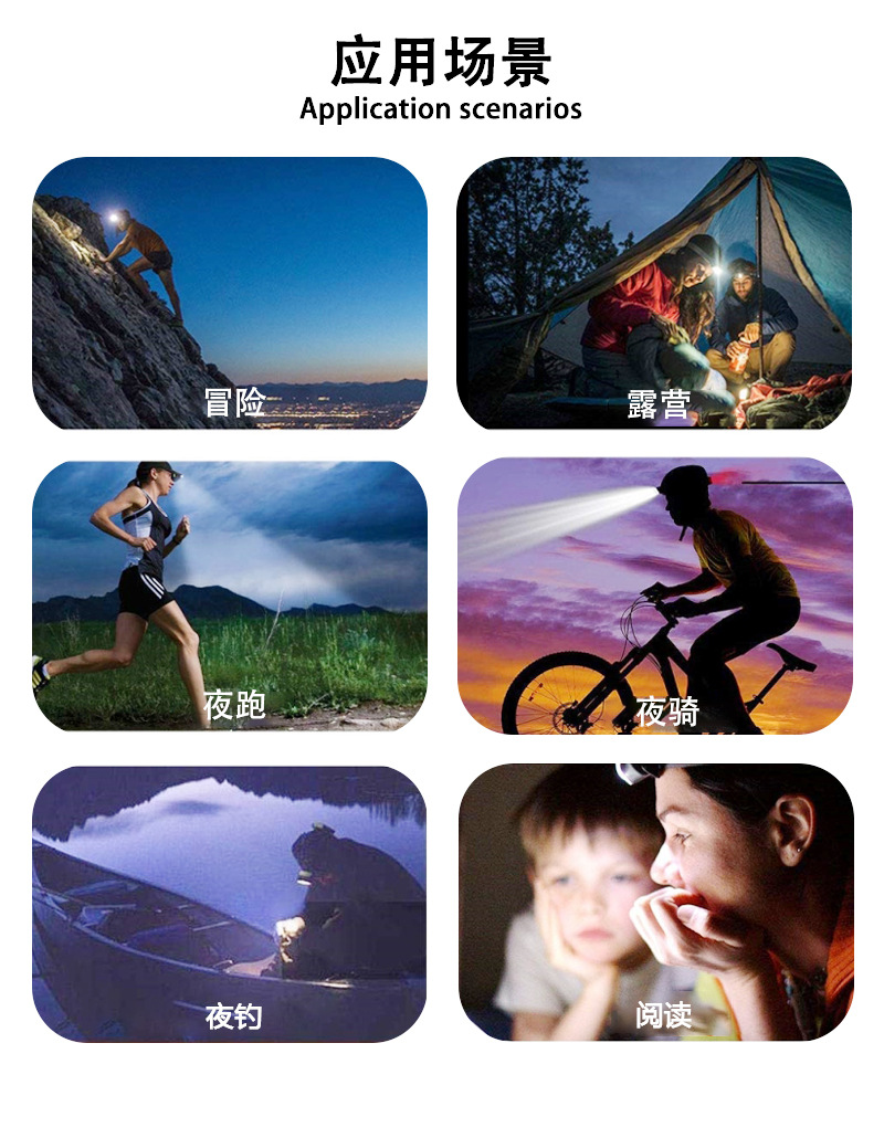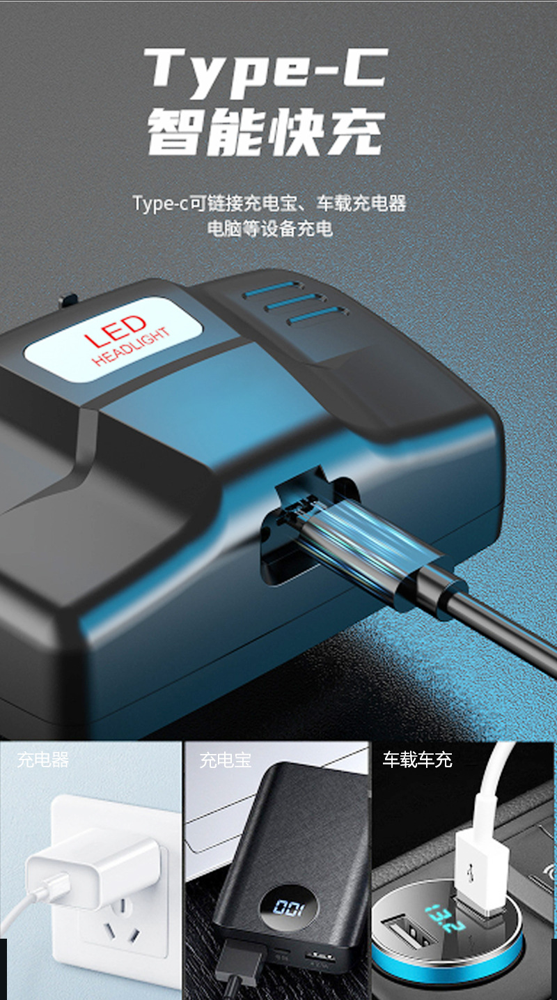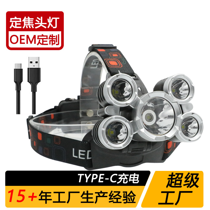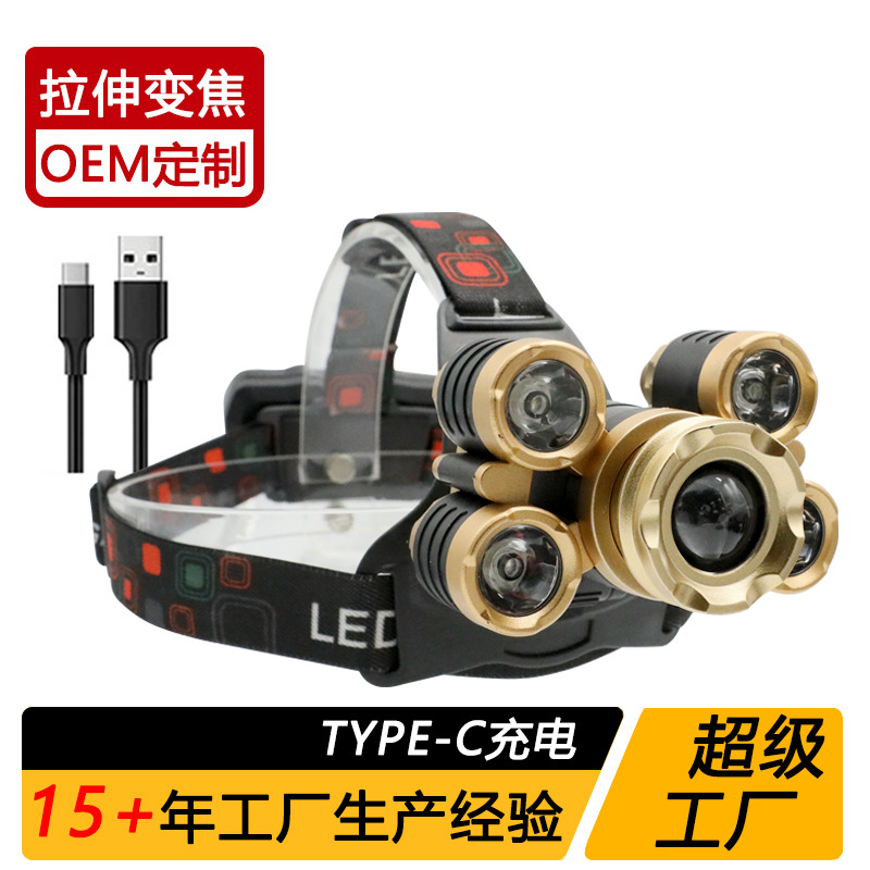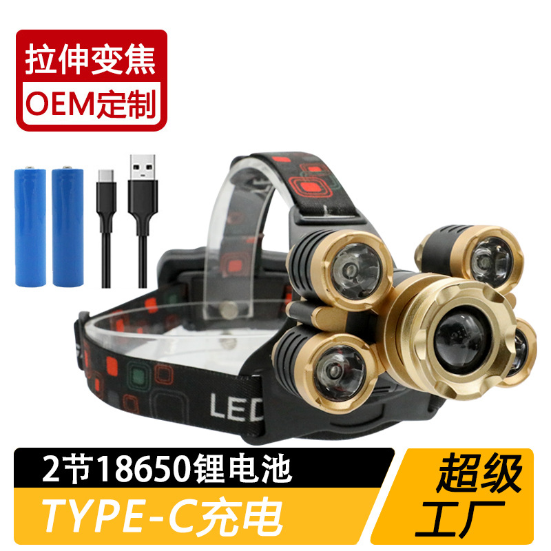 국경 간 야외 비상 방수 TYPE-C 충전 유도 헤드 라이트 긴 내구성 리튬 배터리 강한 조명 줌 낚시 헤드 라이트