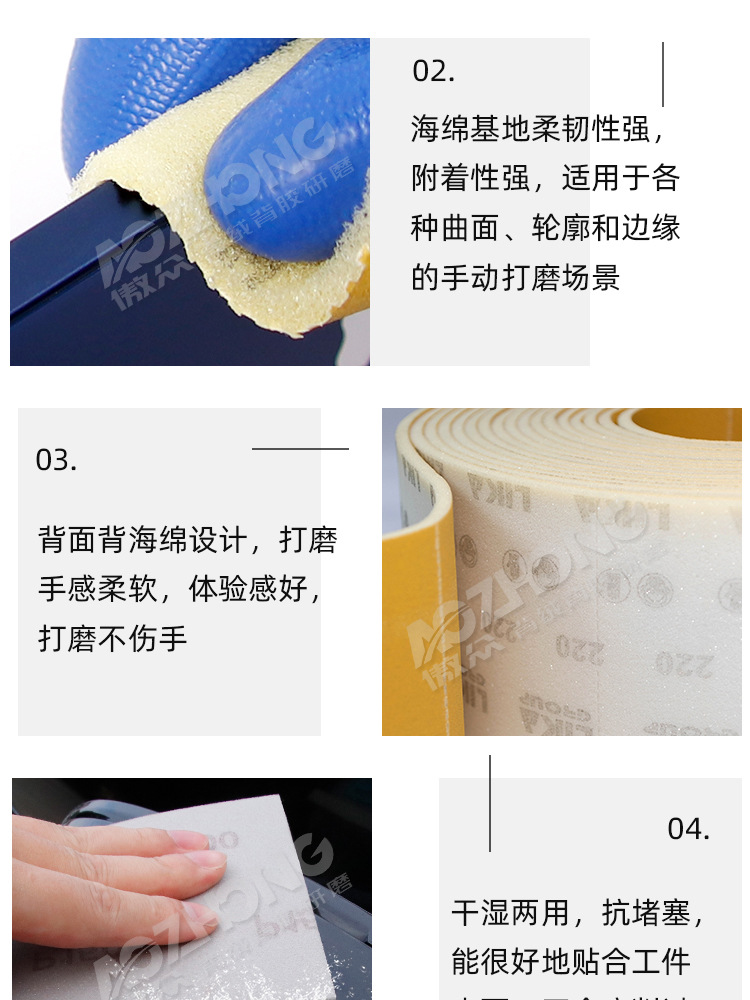 제조 업체 도매 스폰지 사포 롤 노란색 모래 연속 롤 자동차 페인트 연마 국경 수출 스폰지 사포 롤