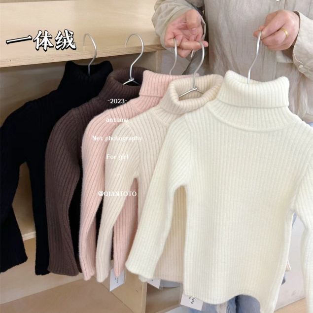[재고] 어린이 스웨터 2025 겨울 새 원피스 벨벳 하이넥베이스 소년 · 소녀용 셔츠 따뜻한 보물