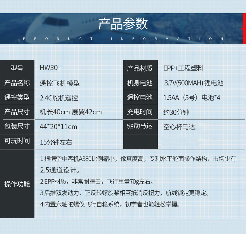 소년용 원격 조종 비행기 장난감 HW30 글라이더 모델 대형 판매 인기 폼 항공기 모델 내압성 및 내충격성스토어 가기