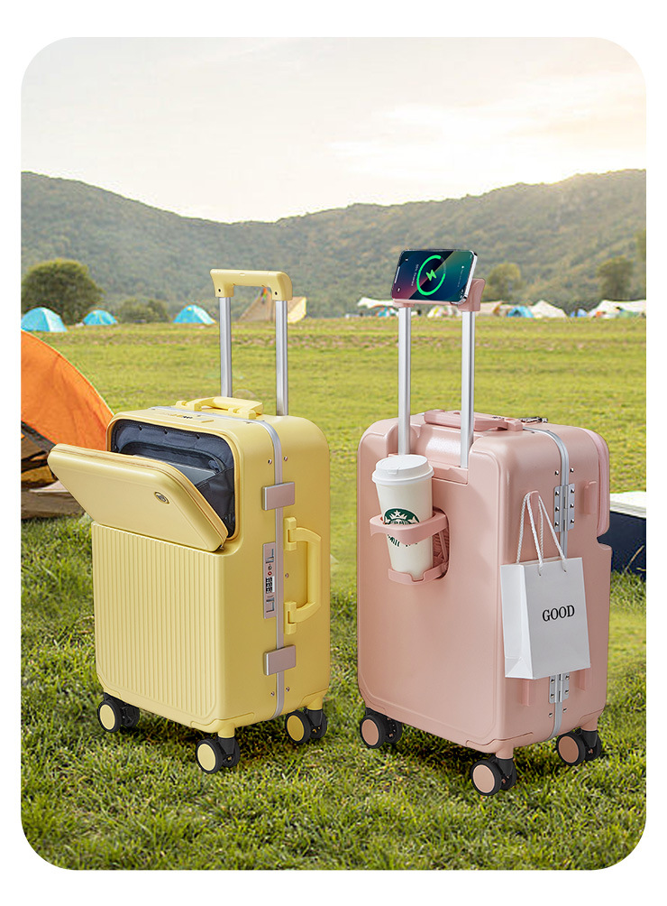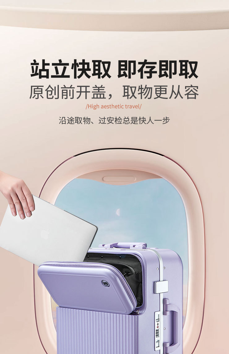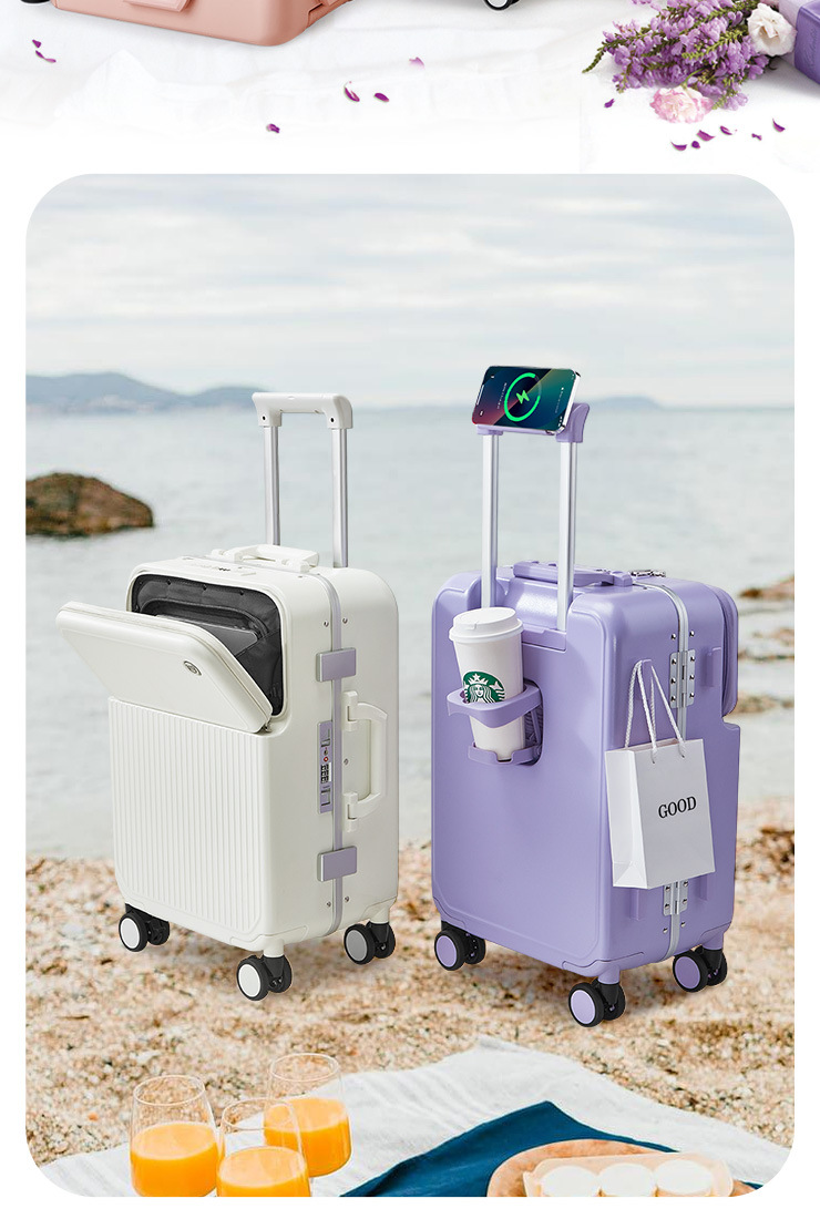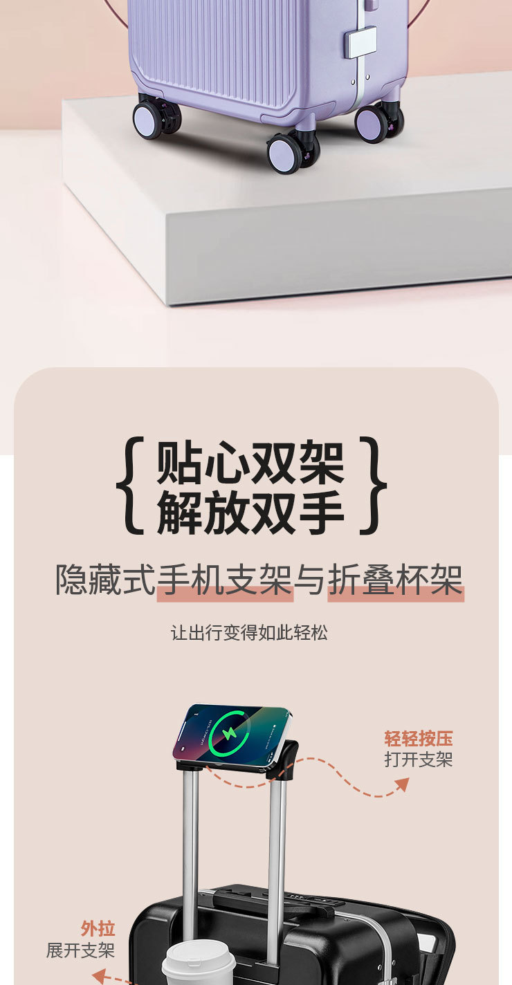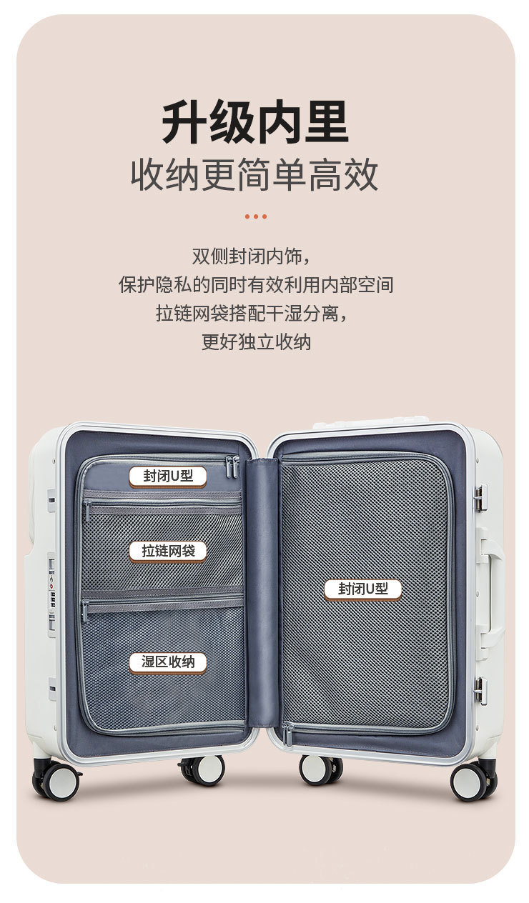 PC 알루미늄 프레임 트롤리 캐리어 20inch 다기능 기내용 비밀번호 캐리어, 고급스러운 디자인의 여행용 캐리어, 저소음 회전 바퀴, 경량스토어 가기