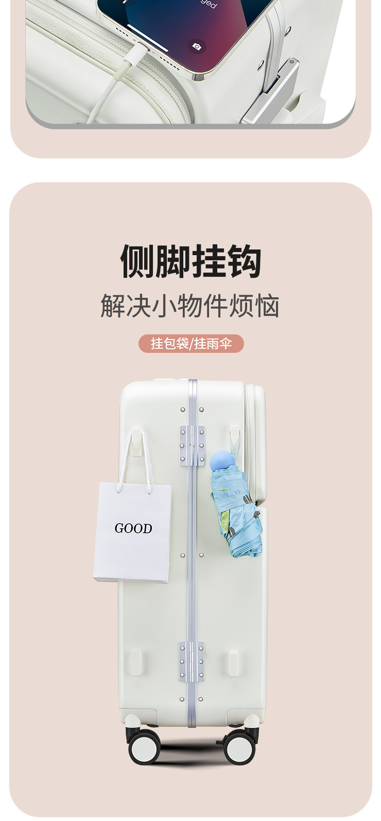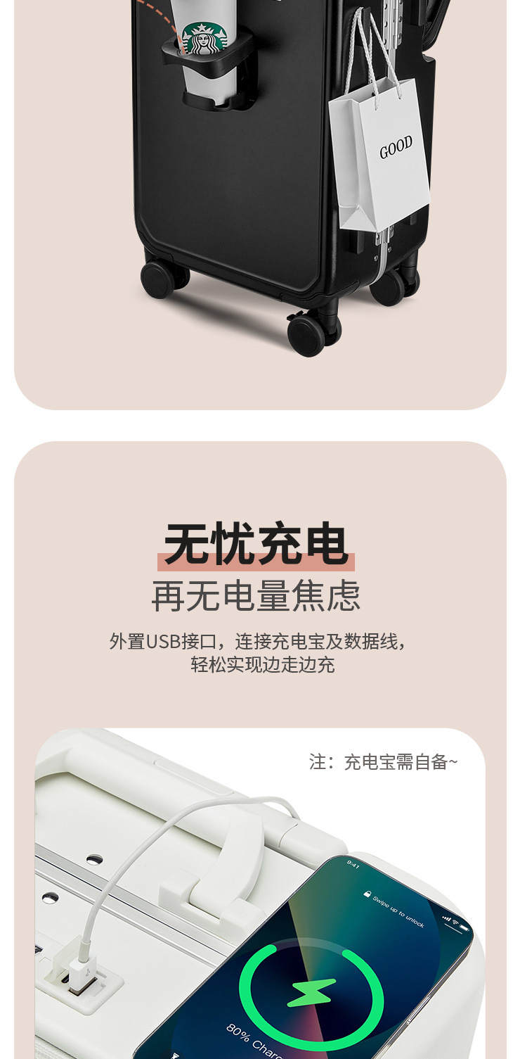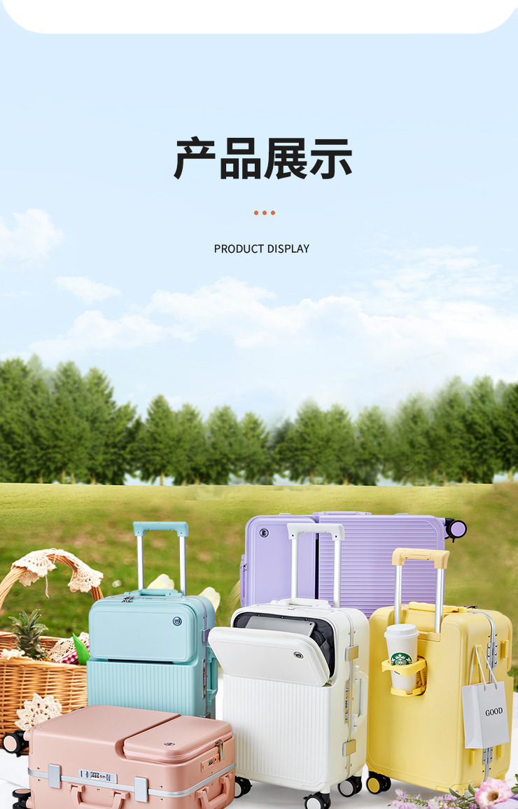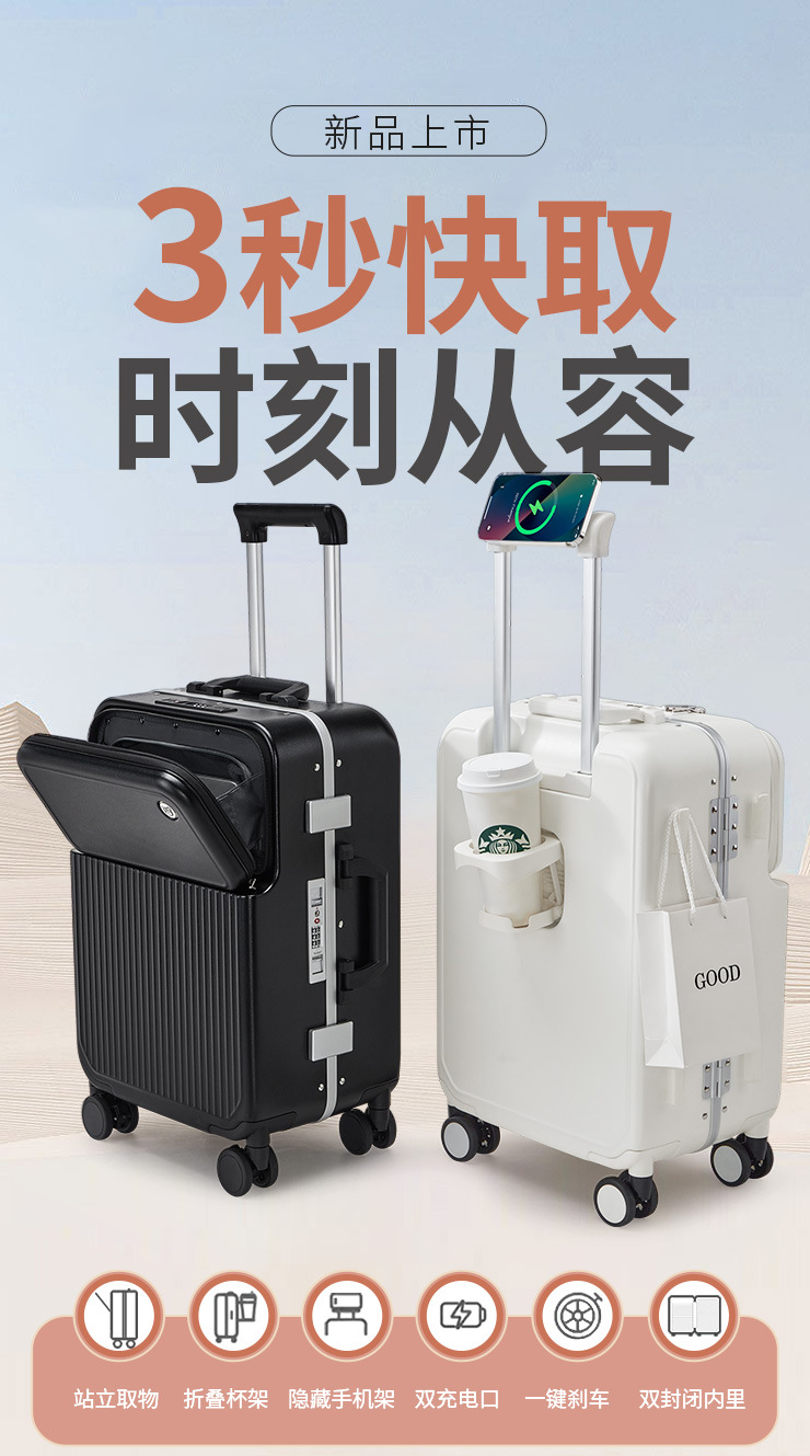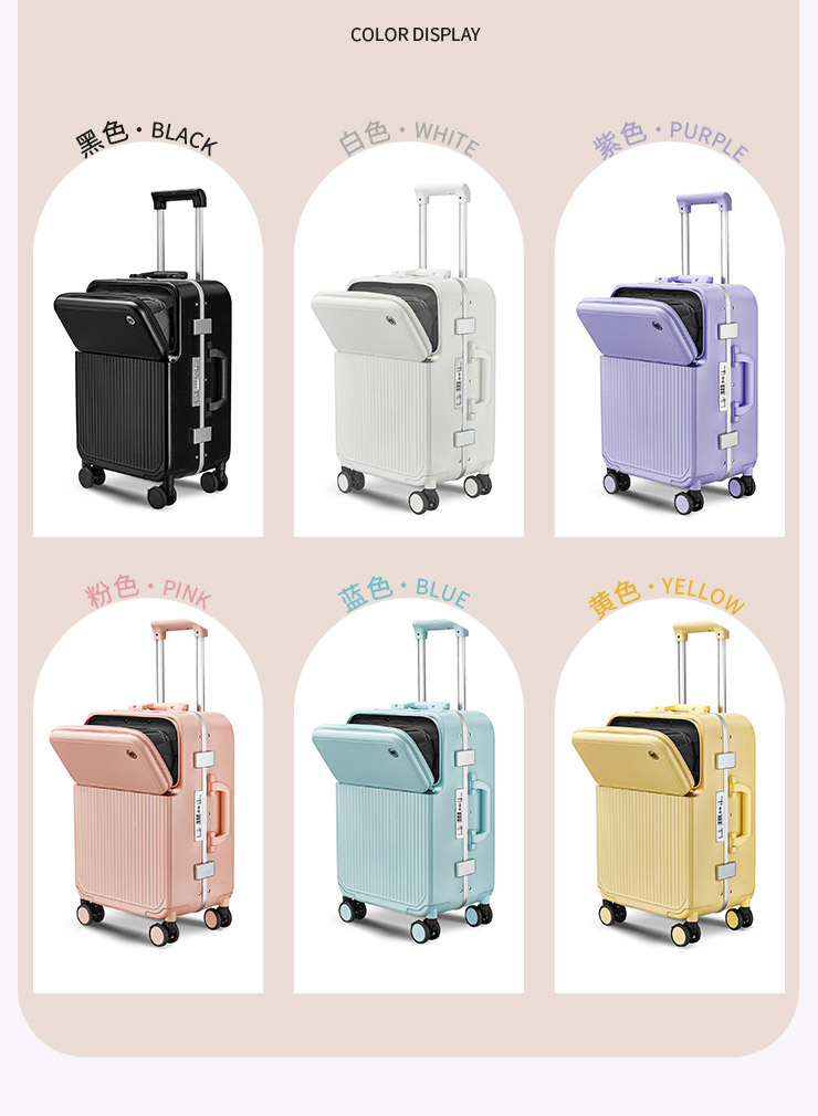 PC 알루미늄 프레임 트롤리 캐리어 20inch 다기능 기내용 비밀번호 캐리어, 고급스러운 디자인의 여행용 캐리어, 저소음 회전 바퀴, 경량스토어 가기