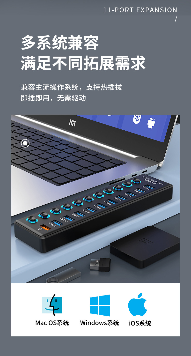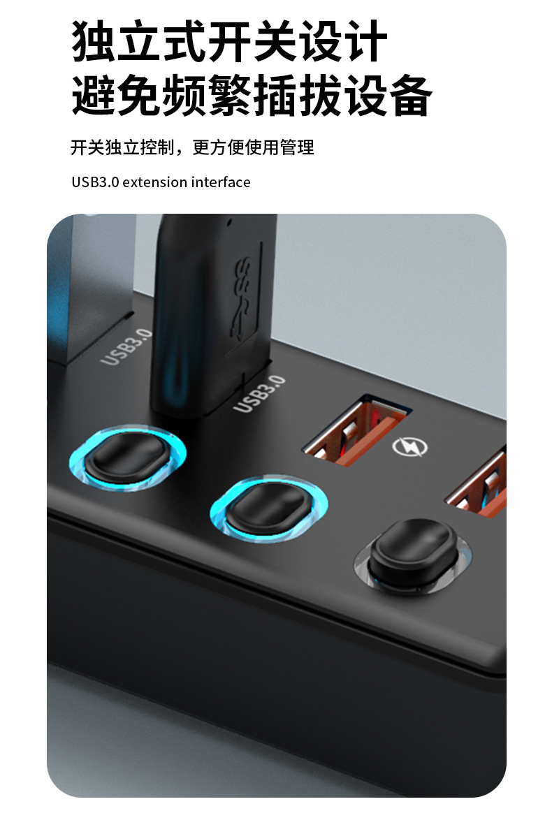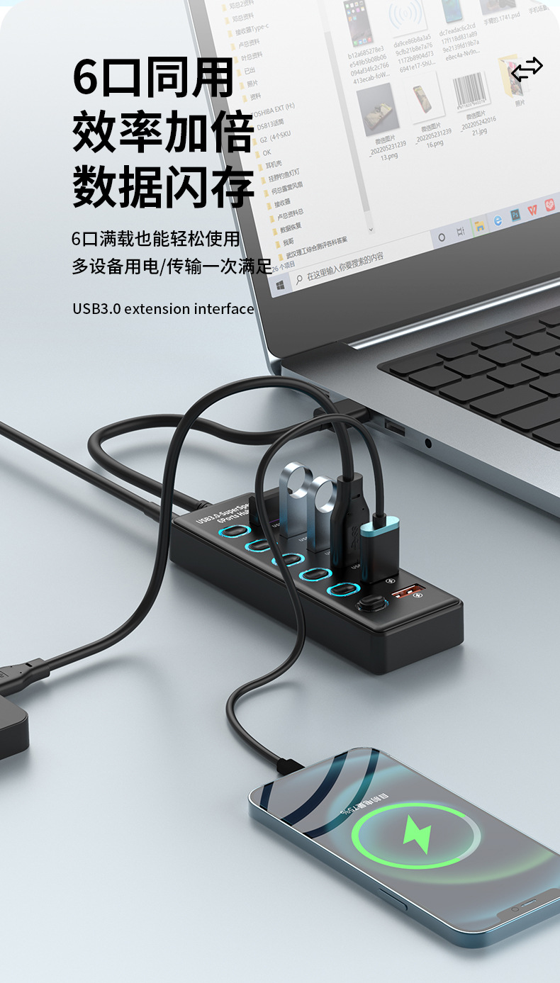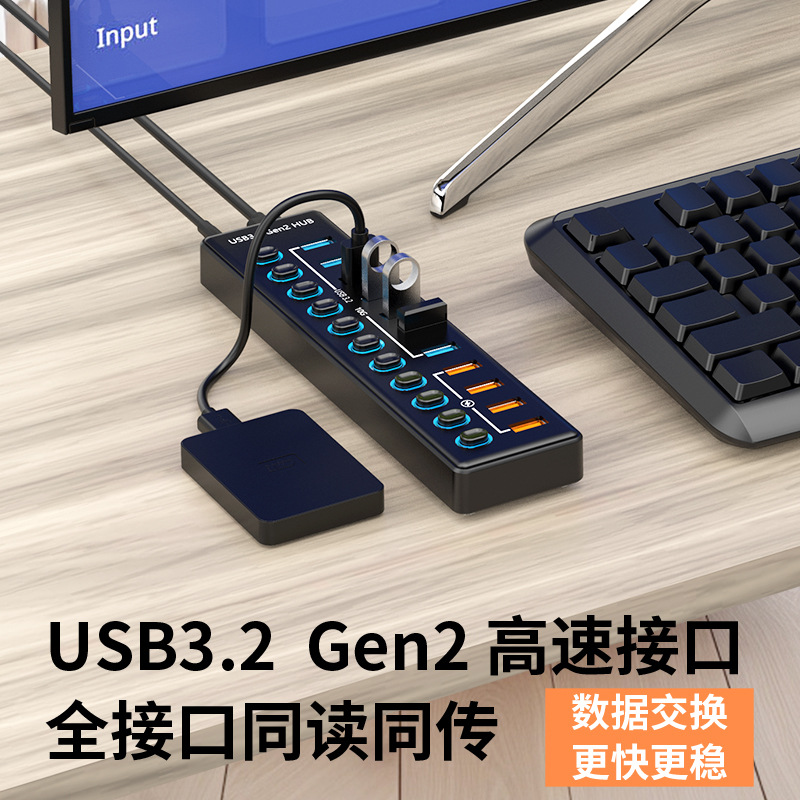USB3.0HUB 도킹 스테이션 10 포트 7 포트 6 포트 4 포트 스위치 충전 USB3.2 허브 컴퓨터 스플리터