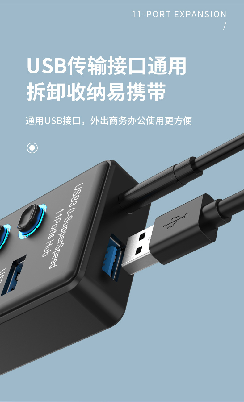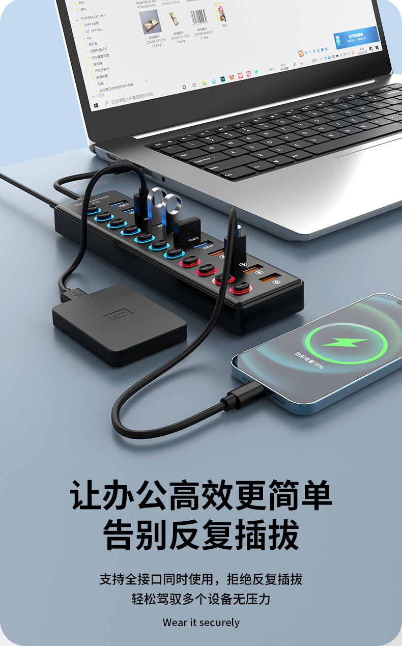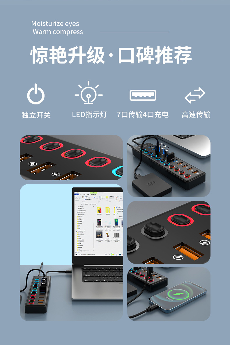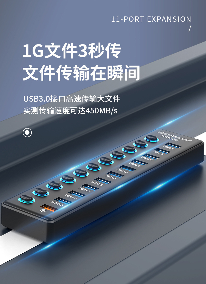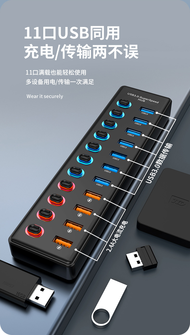 USB3.0HUB 도킹 스테이션 10 포트 7 포트 6 포트 4 포트 스위치 충전 USB3.2 허브 컴퓨터 스플리터