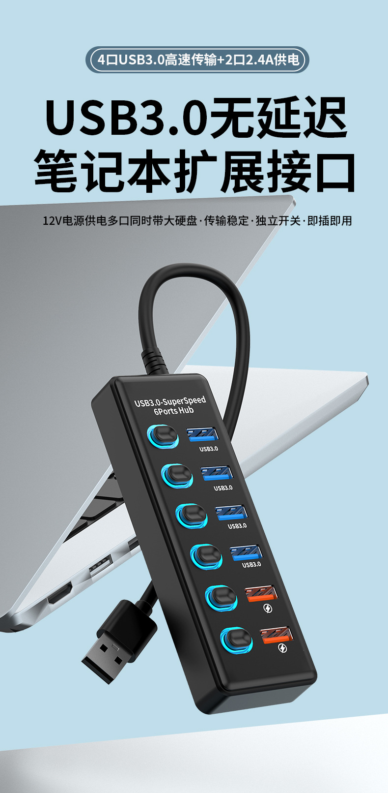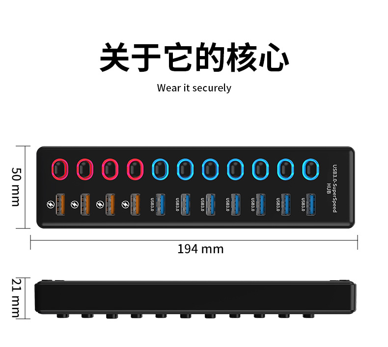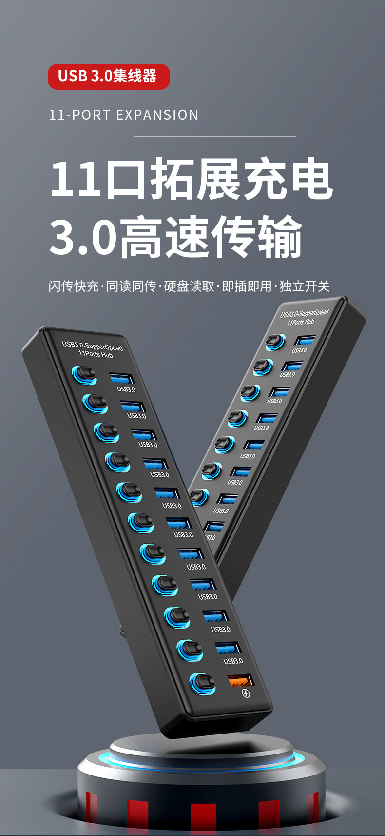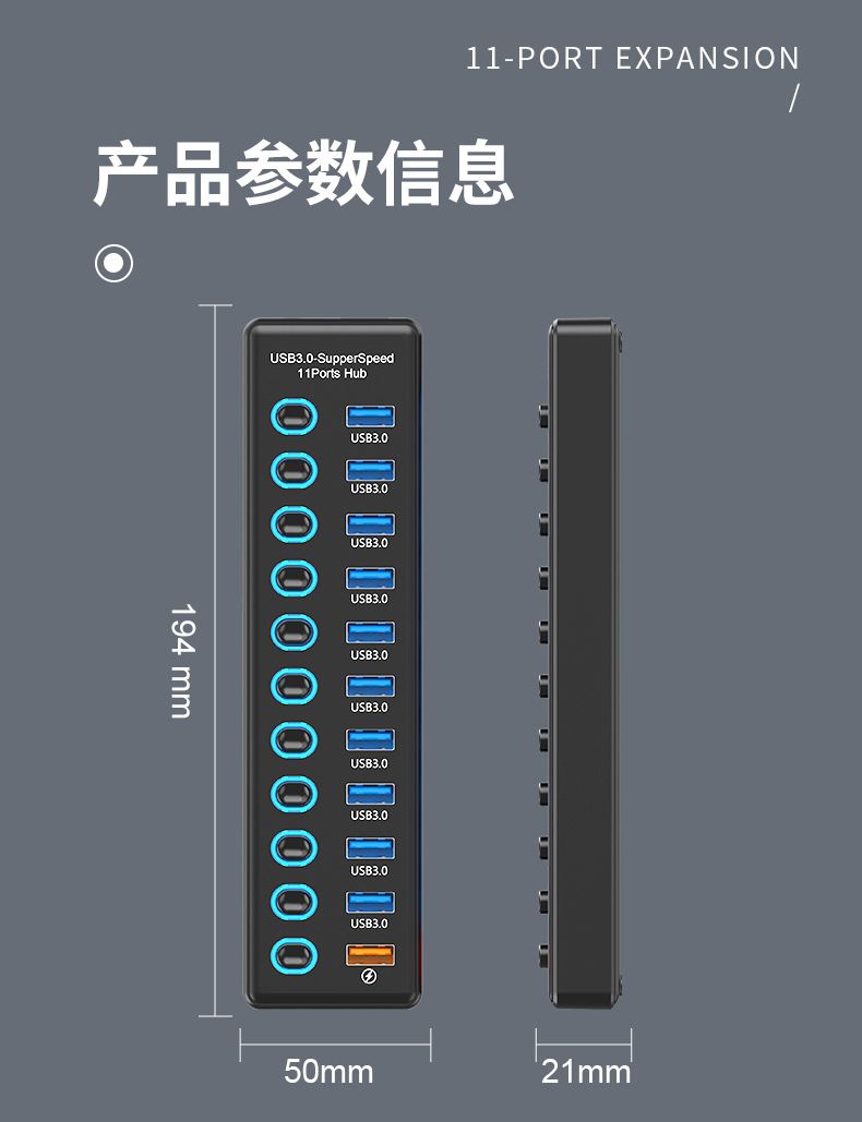 USB3.0HUB 도킹 스테이션 10 포트 7 포트 6 포트 4 포트 스위치 충전 USB3.2 허브 컴퓨터 스플리터