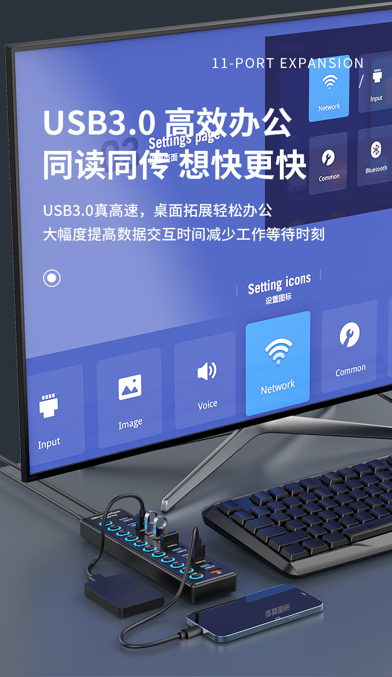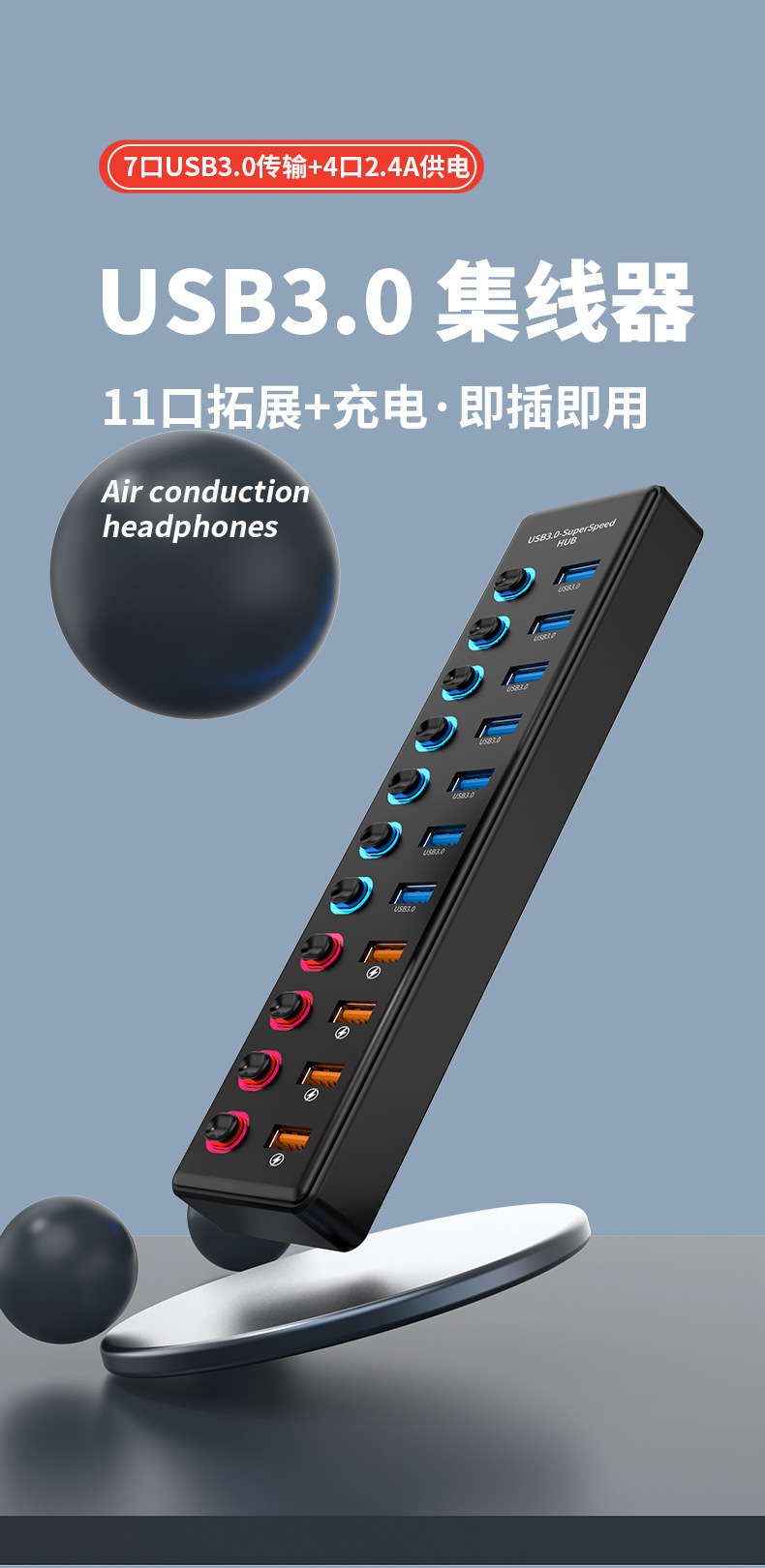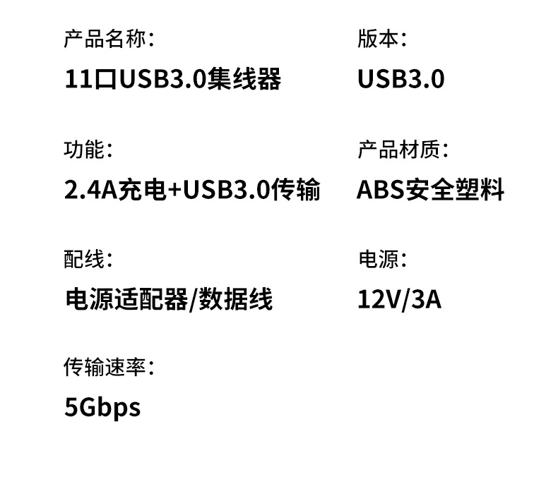 • 611-US 표준 7포트 데이터 2.4m포트 고속 충전(12V3A 전원 공급 장치 포함)