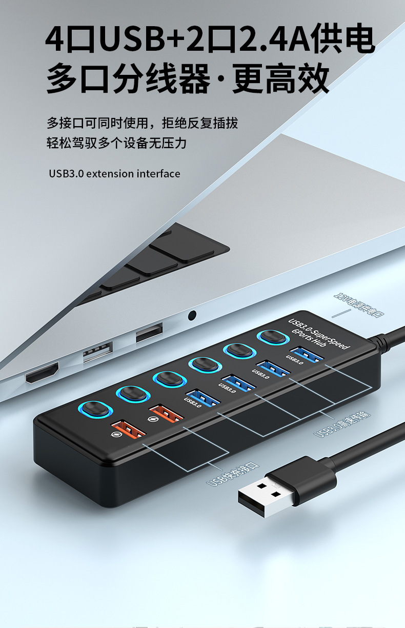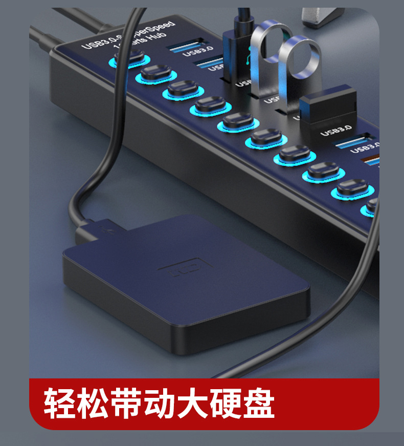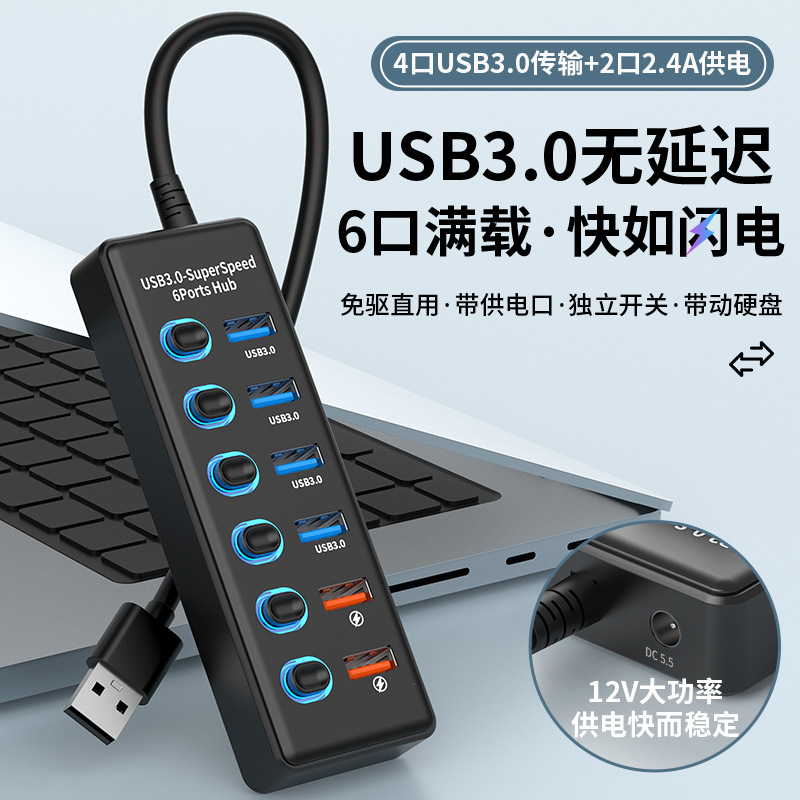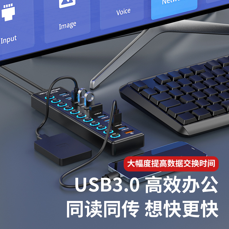 USB3.0HUB 도킹 스테이션 10 포트 7 포트 6 포트 4 포트 스위치 충전 USB3.2 허브 컴퓨터 스플리터스토어 가기