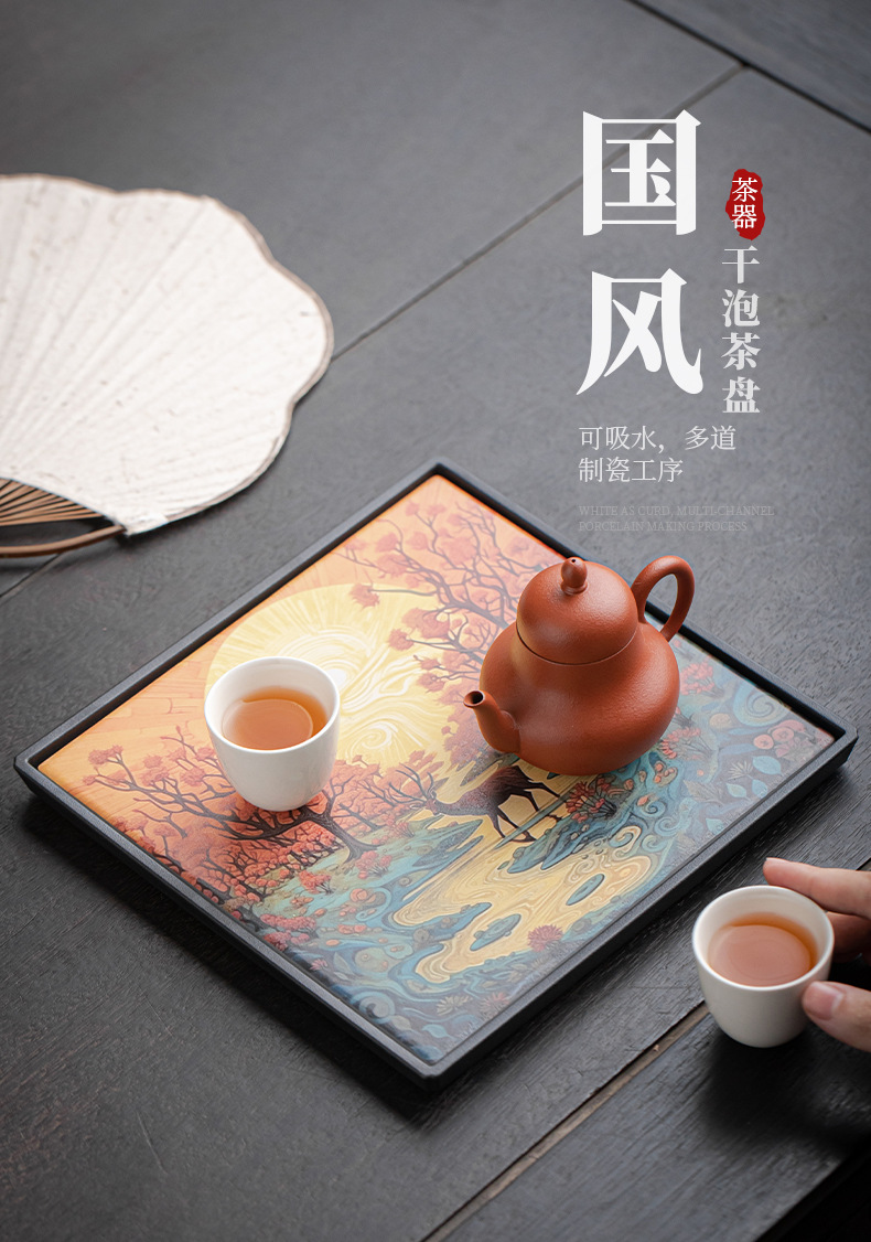 • [국가 스타일 난초 파빌리온 시퀀스] 세라믹 바닥 흡수성 티 트레이