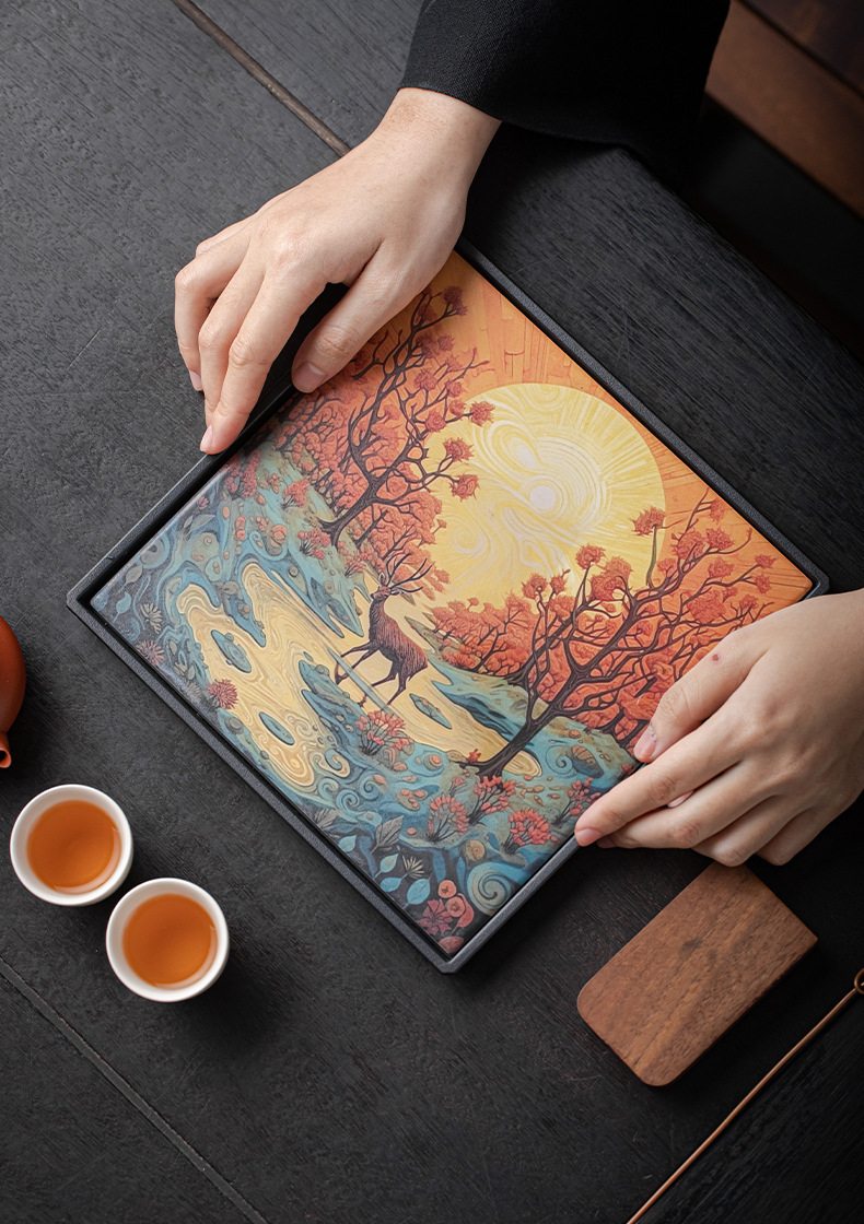 • [한 마리의 사슴이 있습니다] 광장 흡수성 차 쟁반