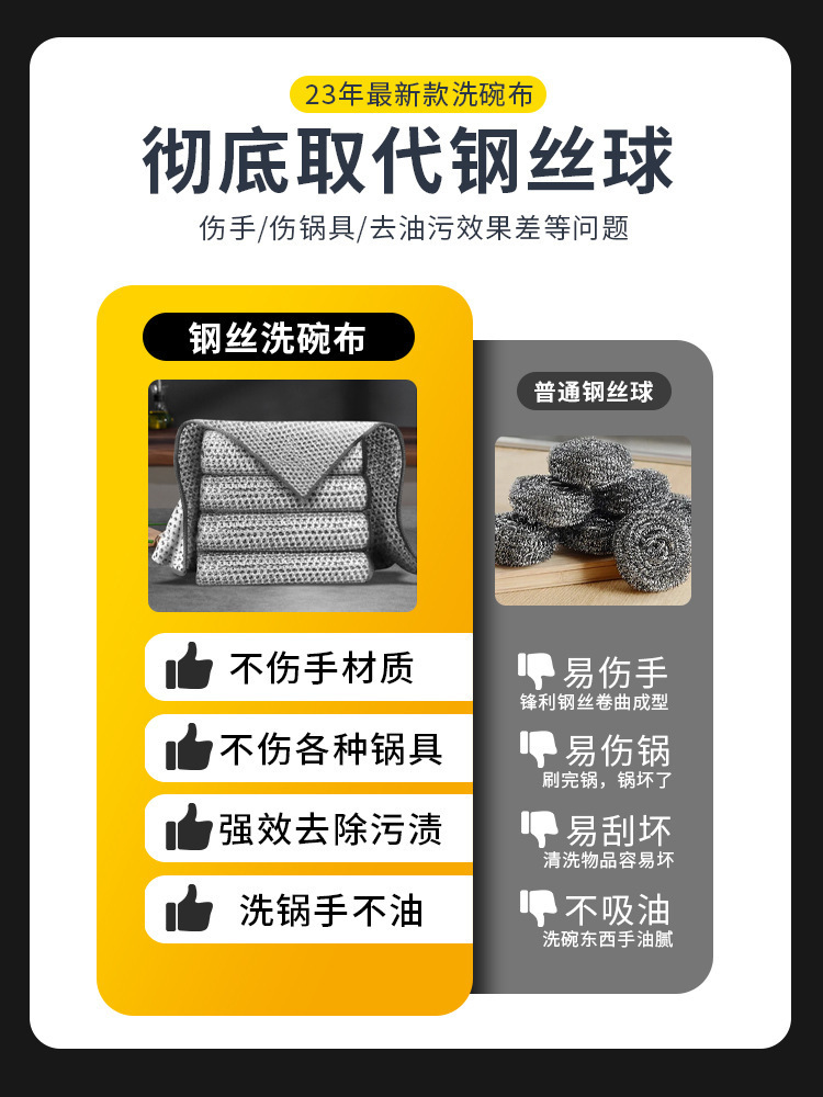 추가 두꺼운 금속 와이어 헝겊 청소 강철 와이어 새로운 빠른 건조 다목적 접시 냄비 양면 스토브 주방 저울 제거