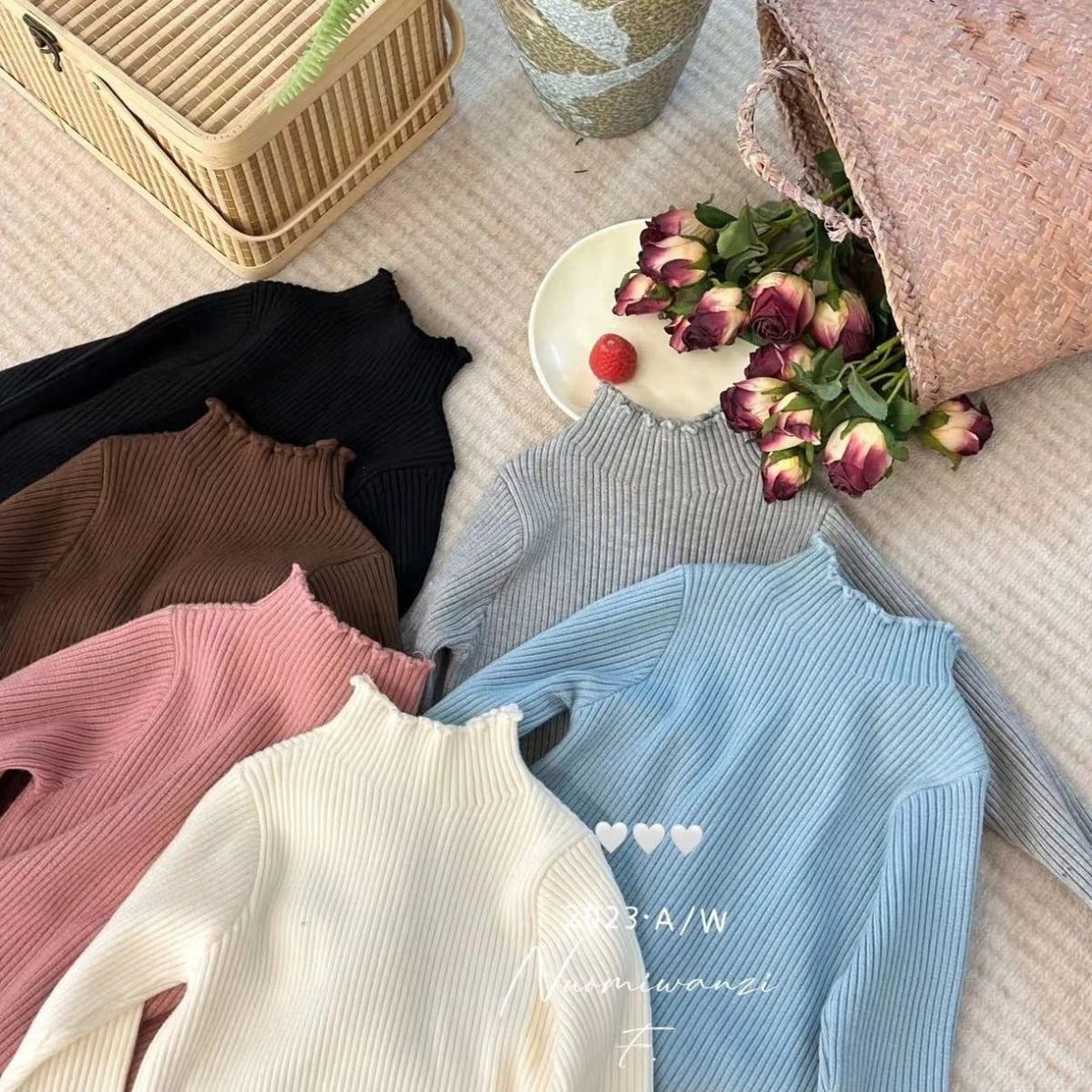 [여아용 한국 스타일 하프 터틀넥 스웨터 2025 가을 겨울 신상 베이비 풀오버 스웨터로 따뜻하게 보낼 수 있습니다.스토어 가기