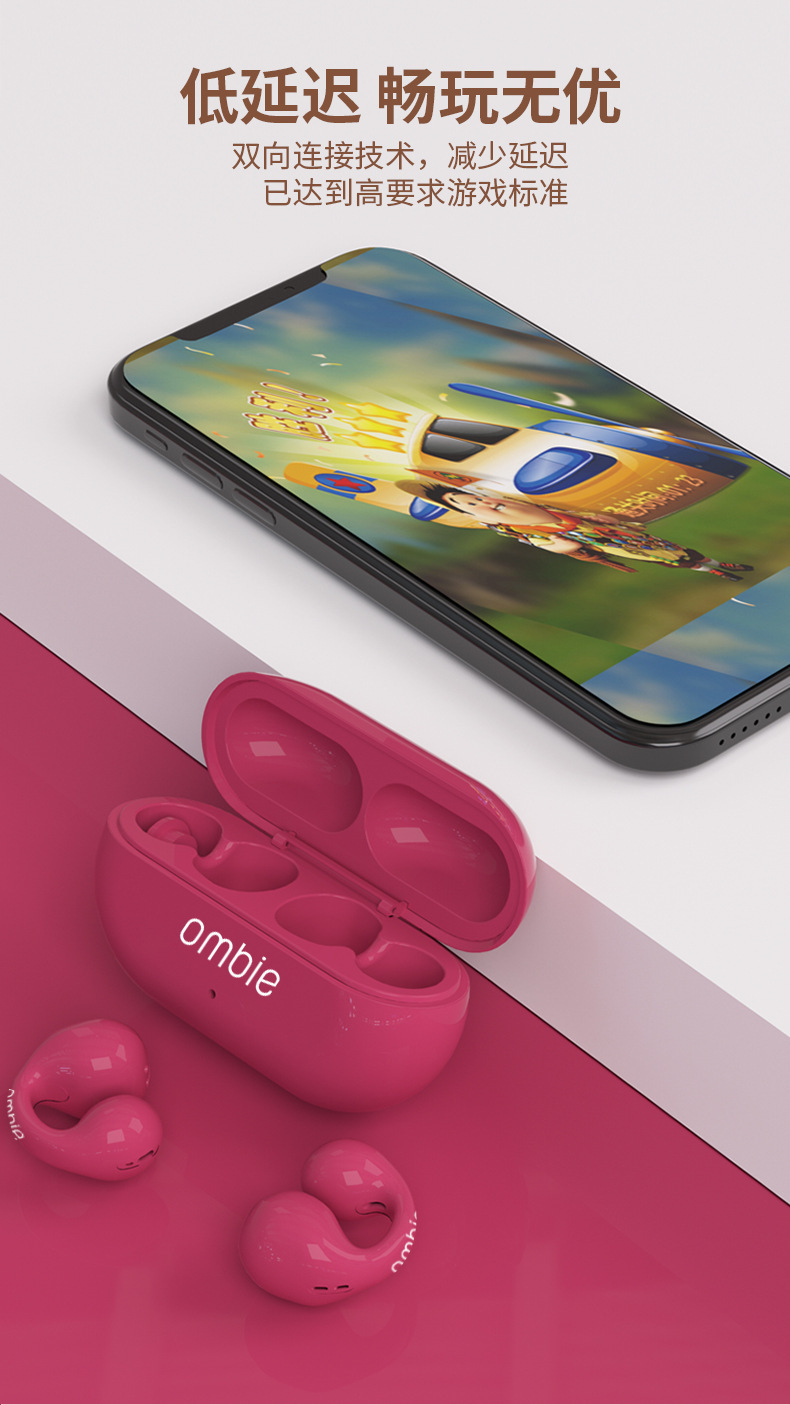 크로스보더 심플 옴비 이어클립형 비삽입형 블루투스 이어폰, 초장시간 배터리 수명, 골전도 소음 감소 무선 이어폰스토어 가기