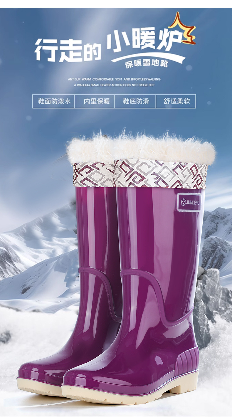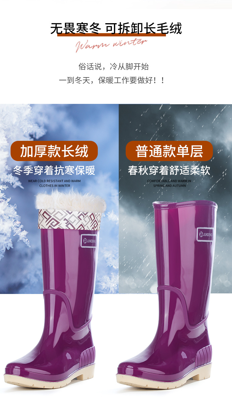 Jundeng 여성 하이 탑 레인 부츠 유행 올 매치 여행 여성 레인 부츠 따뜻한 물 신발 미끄럼 방지 여성용 고무 신발 워터 슈즈