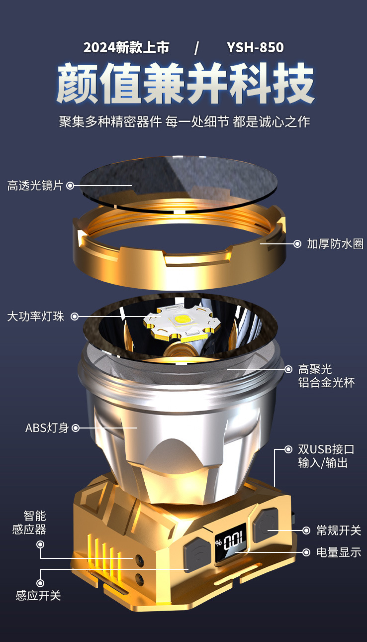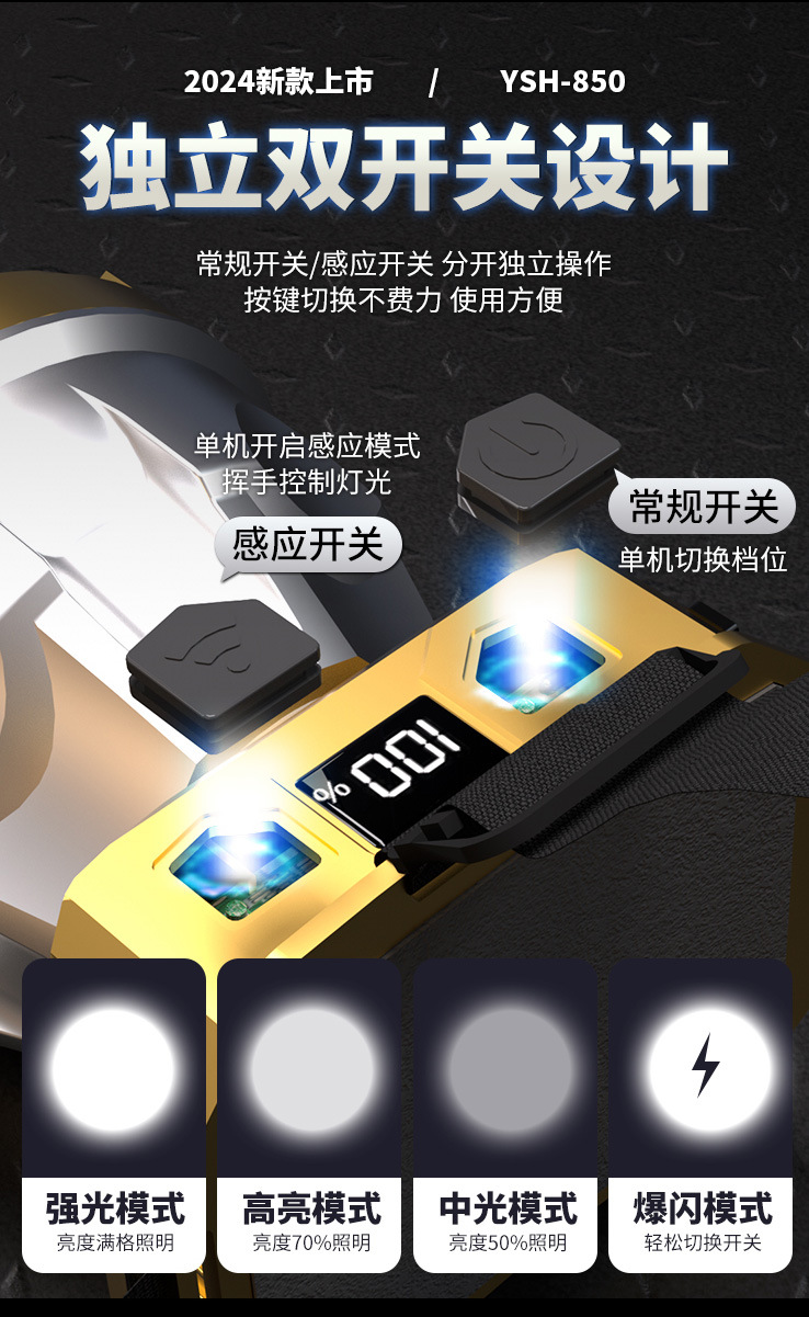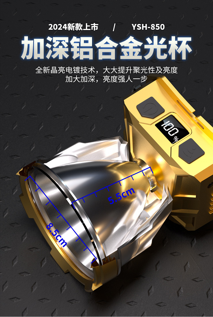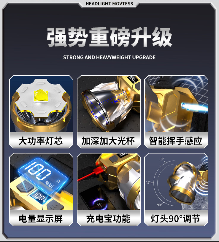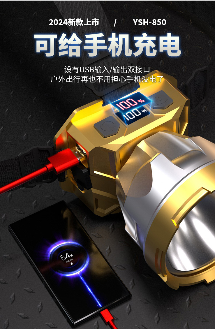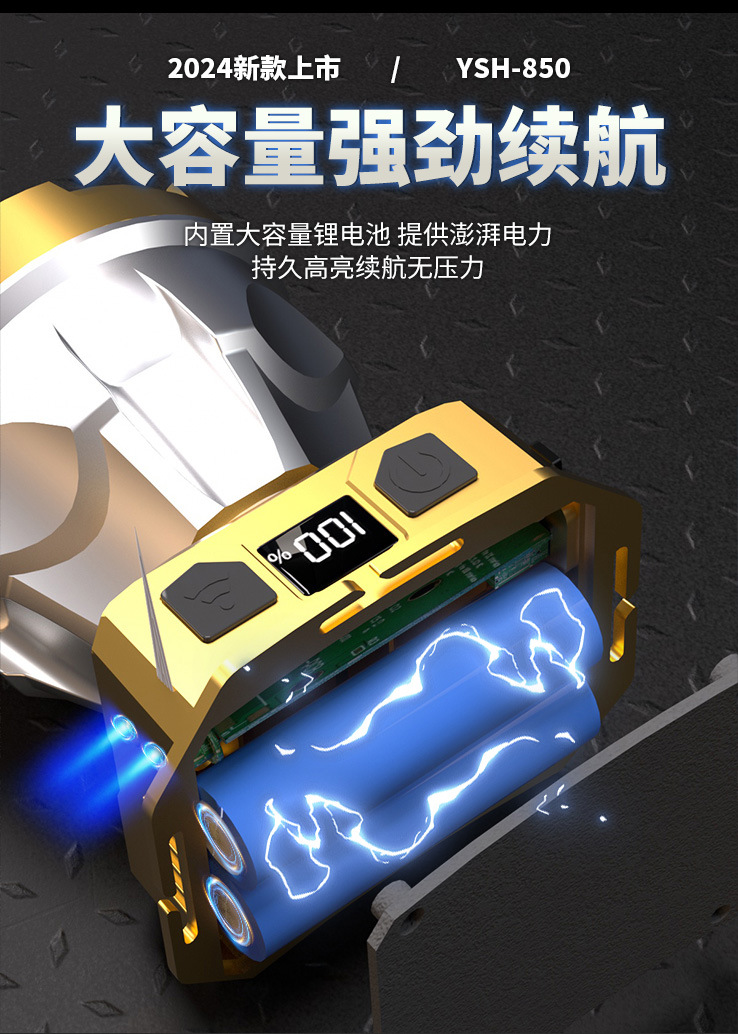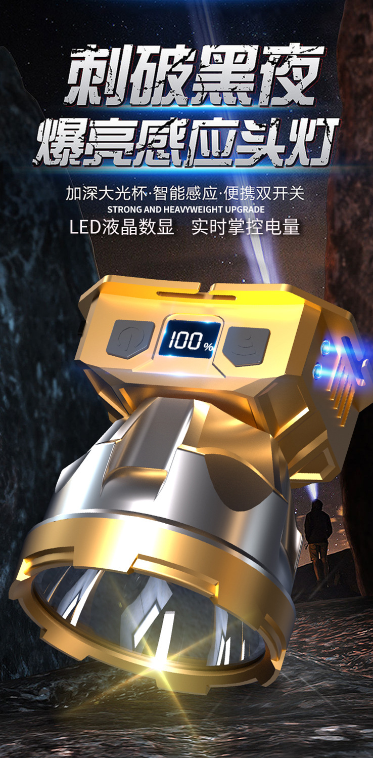 국경 간 유도 헤드 램프 헤드 장착 대형 라이트 컵 슈퍼 밝은 긴 내구성 손전등 야간 낚시 램프 디지털 디스플레이 조명 광부의 램프