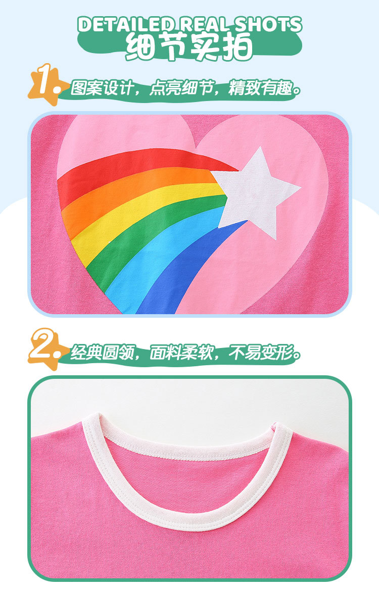 25 여름 새 여자 티셔츠 사랑 무지개 인쇄 어린이 면화 운동복 아기 라운드 넥 반팔 탑스토어 가기