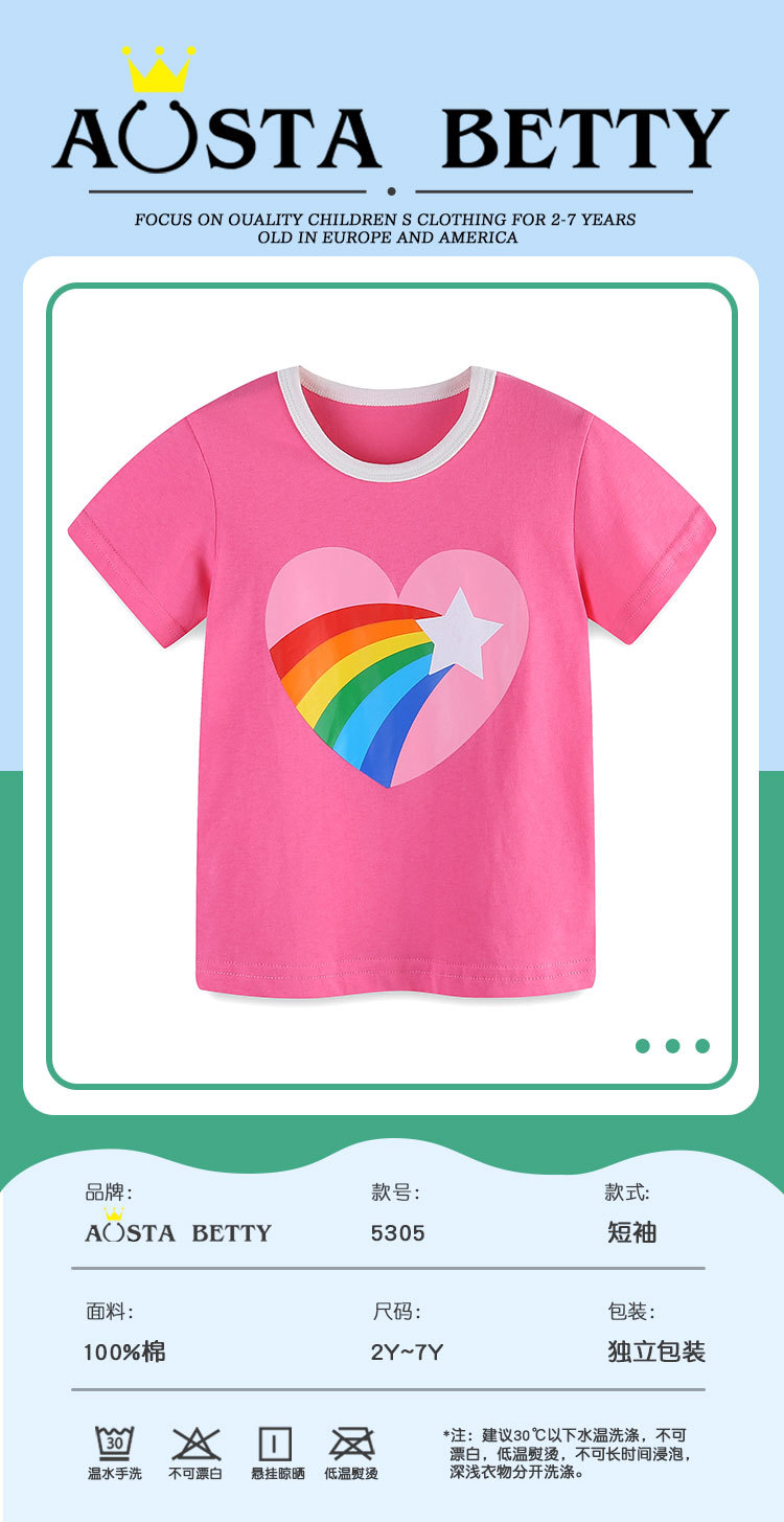 25 여름 새 여자 티셔츠 사랑 무지개 인쇄 어린이 면화 운동복 아기 라운드 넥 반팔 탑