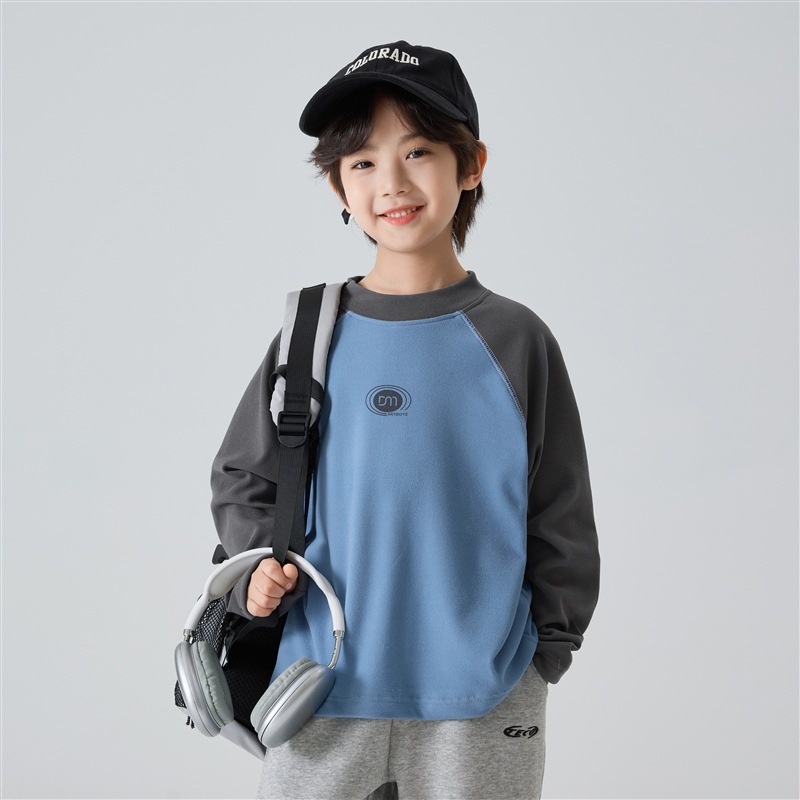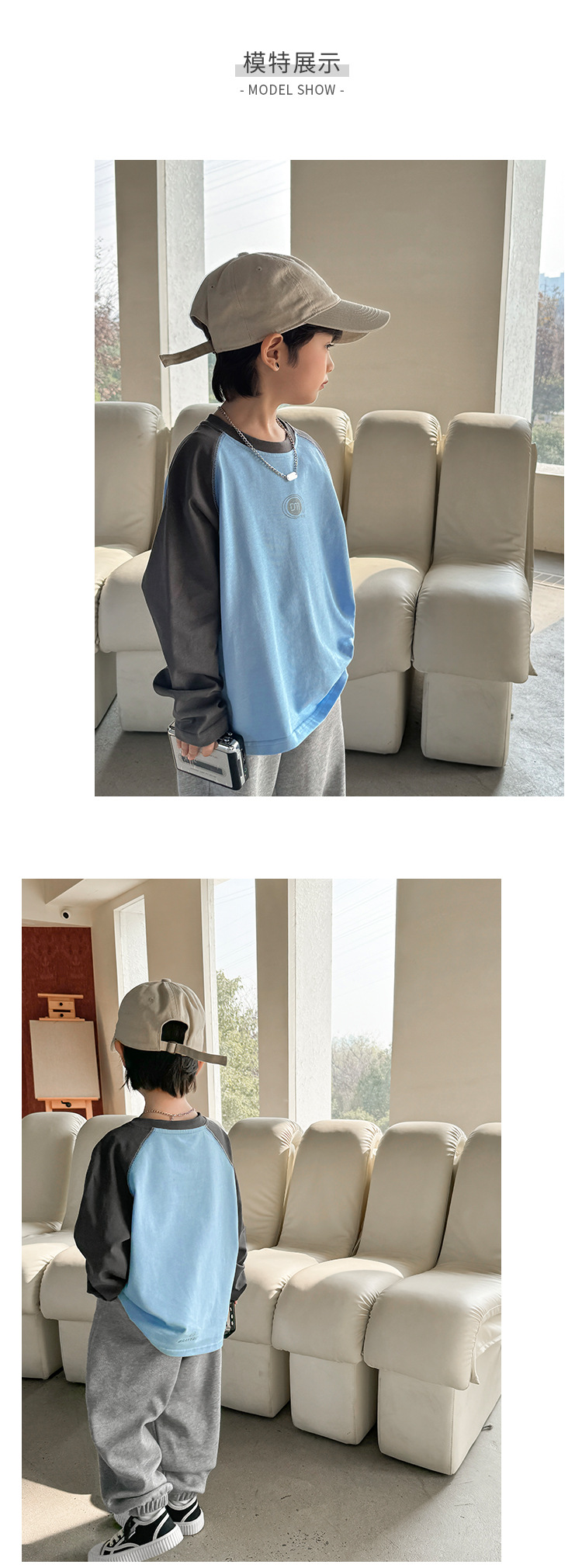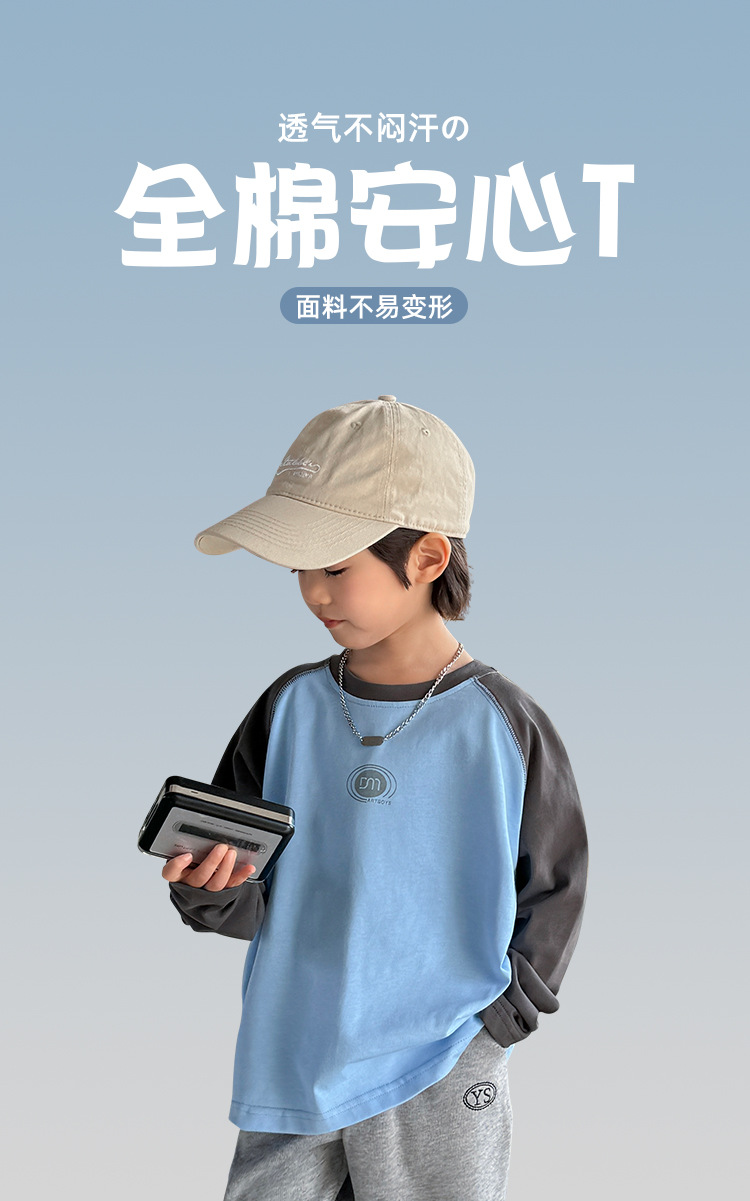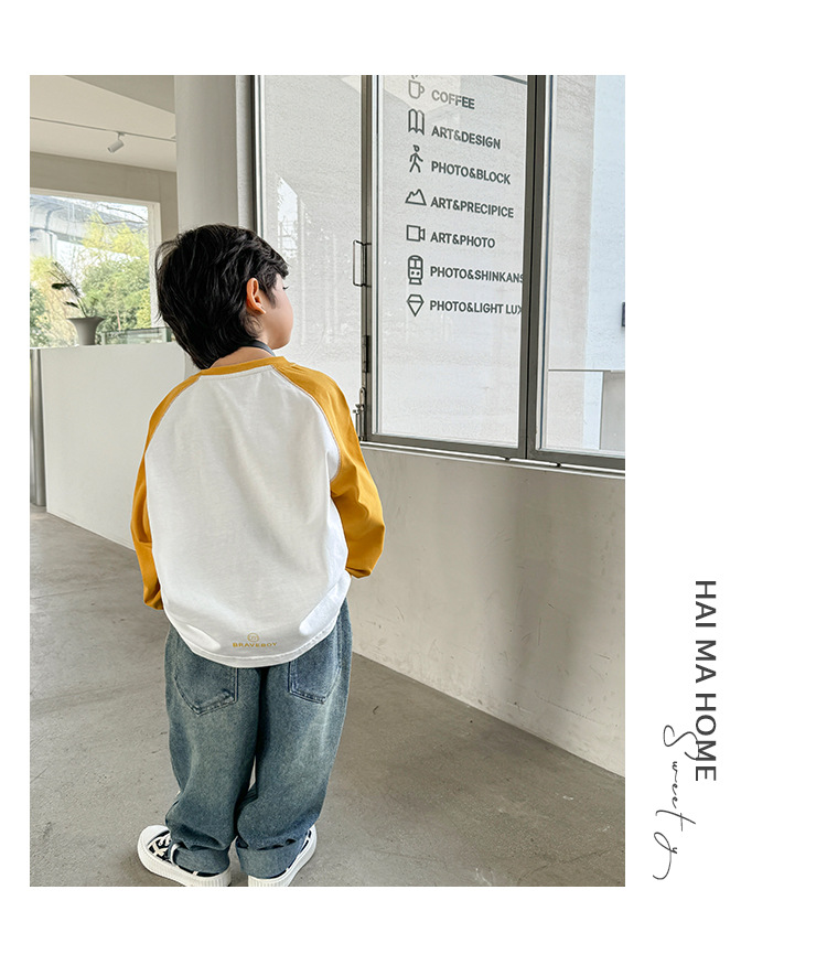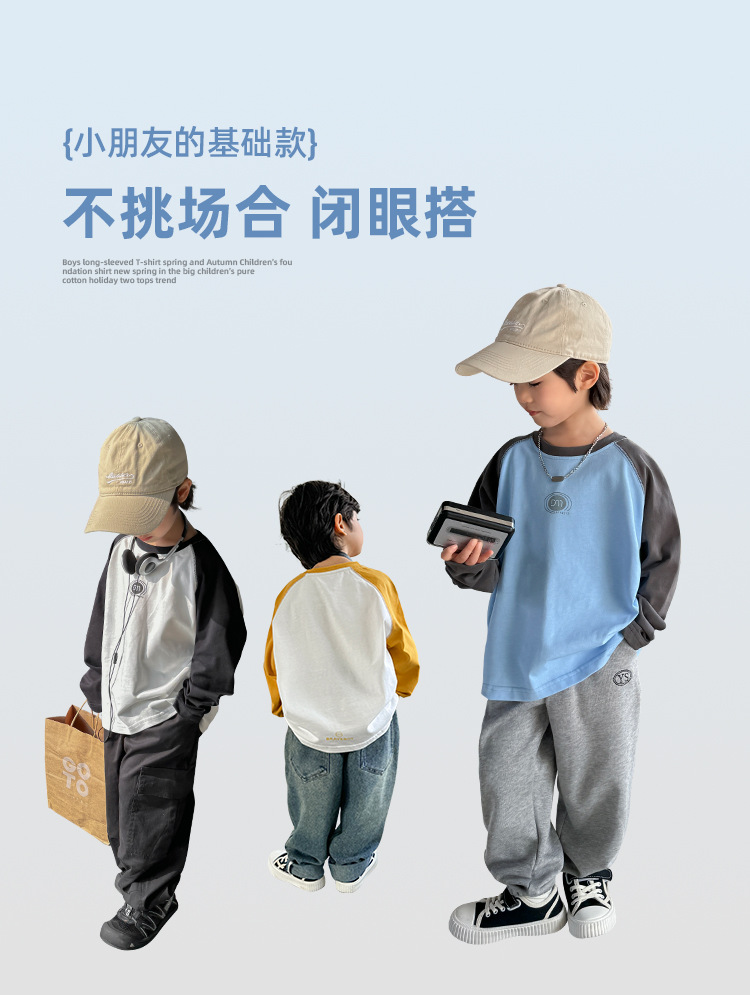 Haima의 아동복 2025 봄, 가을 신작 소년 순면 긴팔 티셔츠, 세련된 가을 옷, 트렌디한 바닥 셔츠스토어 가기