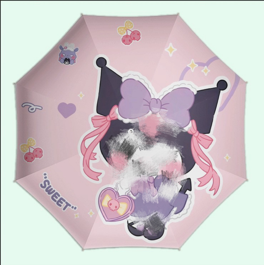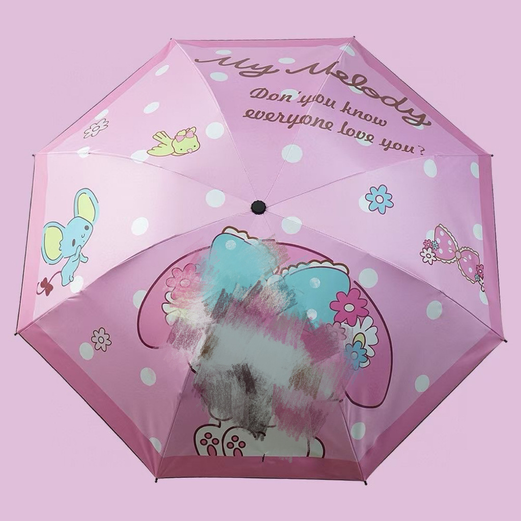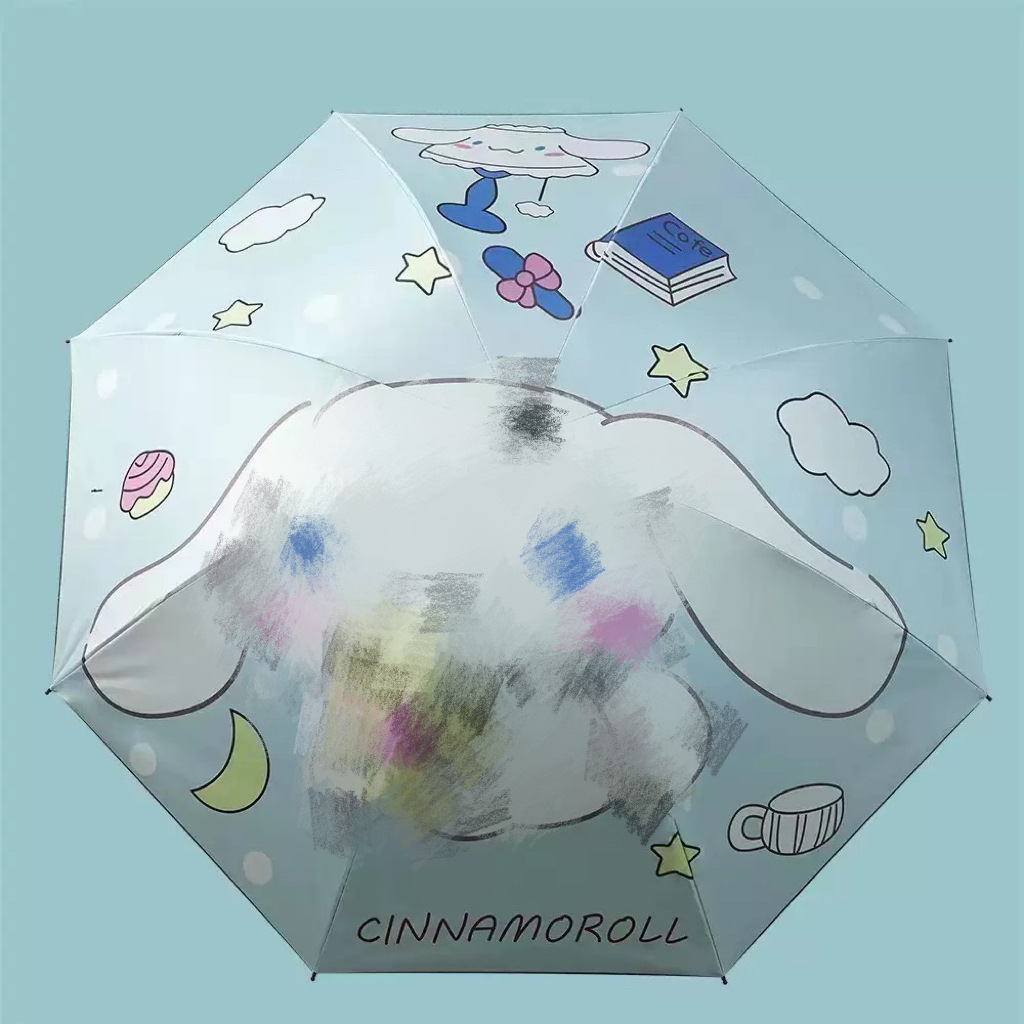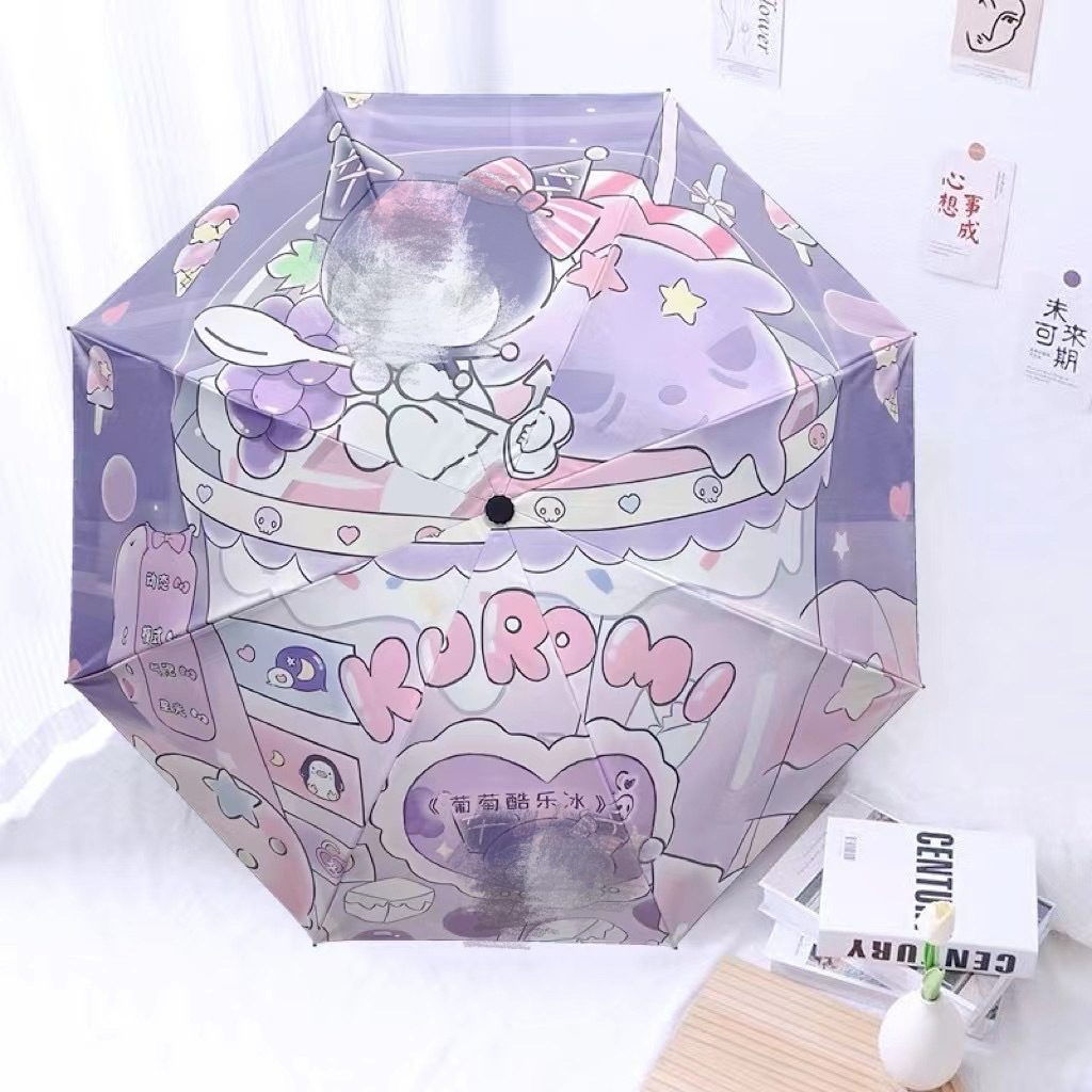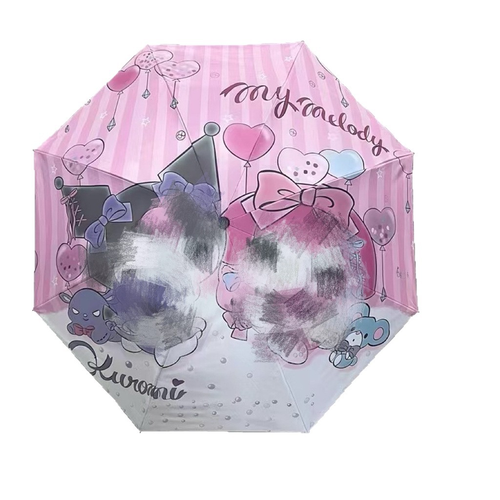 Kulomi 스팟 도매 Sanrio 비닐 이중 사용 화창한 우산 접이식 비닐 만화 태양 우산 어린이 우산스토어 가기