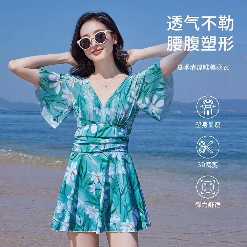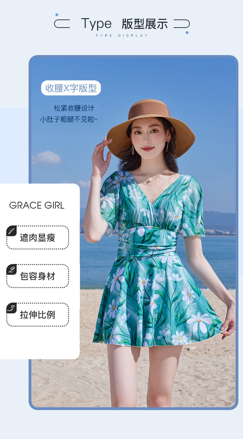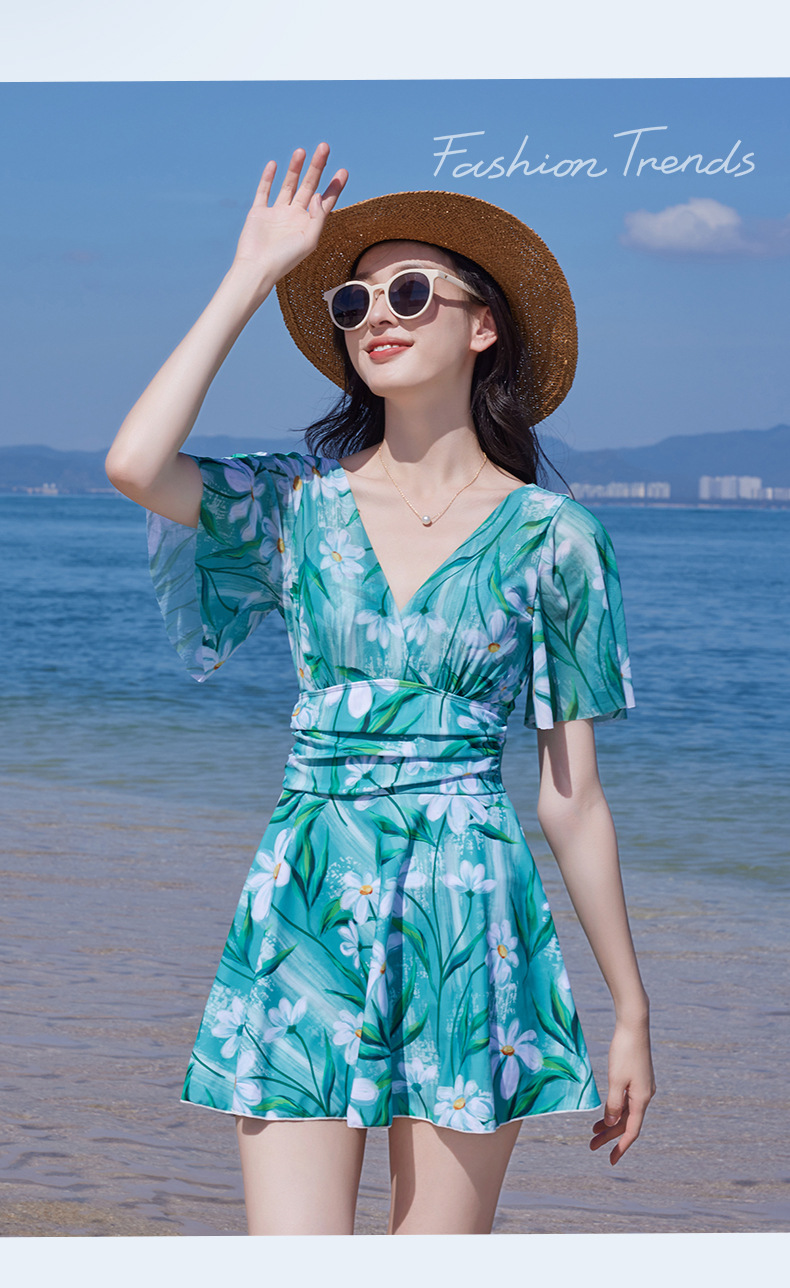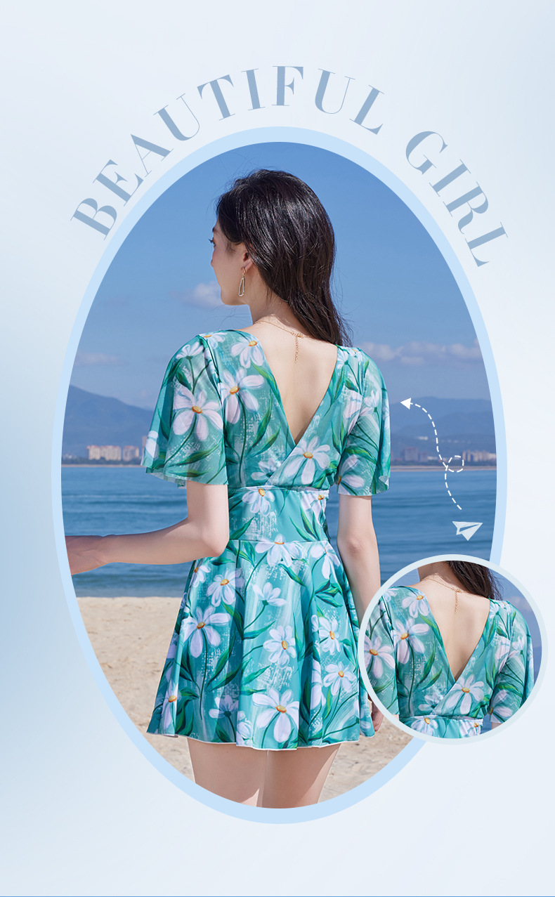 여성용 플러스 사이즈 수영복, 플라워 프린트 섹시 하이웨이스트, 몸매를 가려주는 슬림 수영복, 보수적인 V자형 백리스 수영복 도매스토어 가기