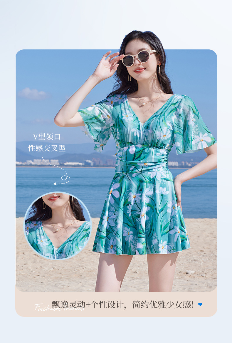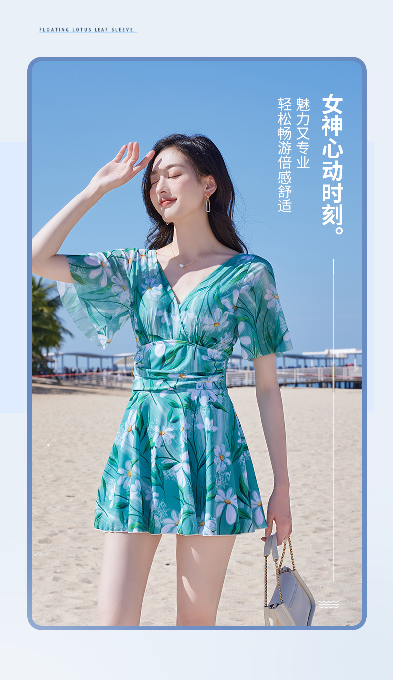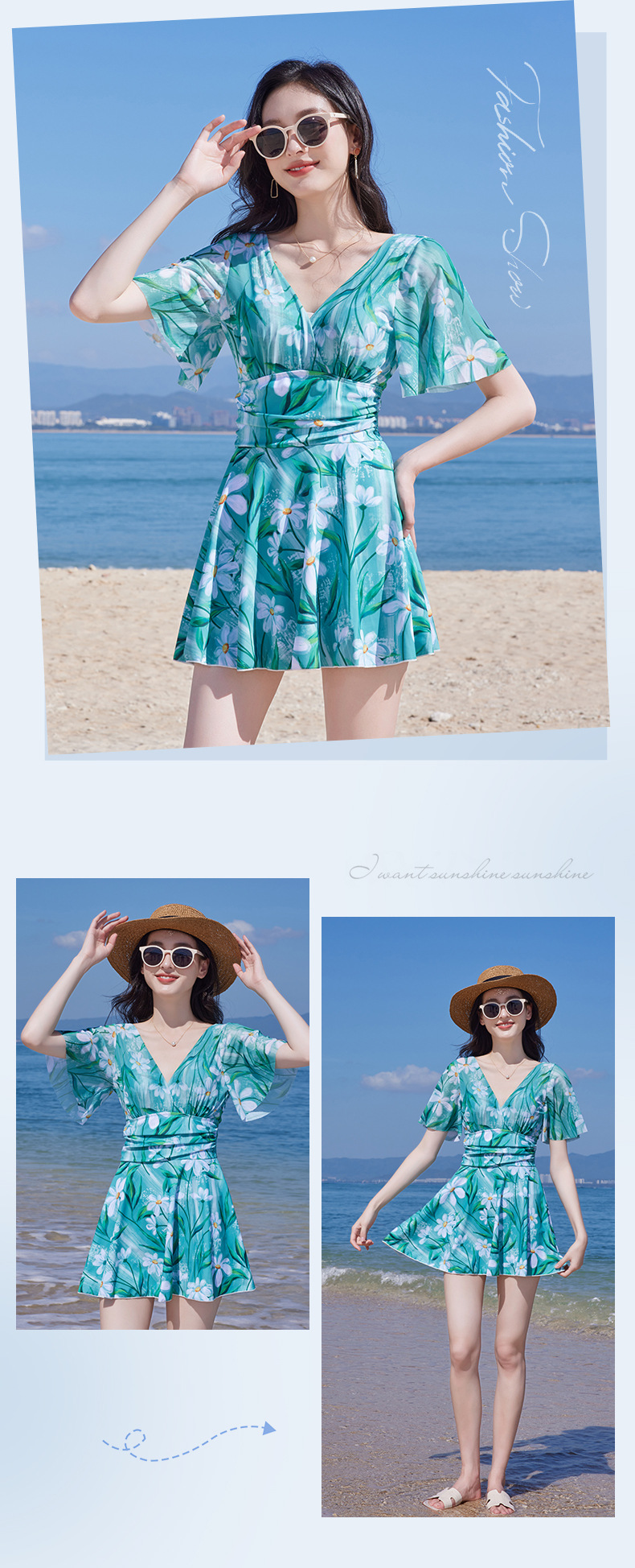여성용 플러스 사이즈 수영복, 플라워 프린트 섹시 하이웨이스트, 몸매를 가려주는 슬림 수영복, 보수적인 V자형 백리스 수영복 도매스토어 가기