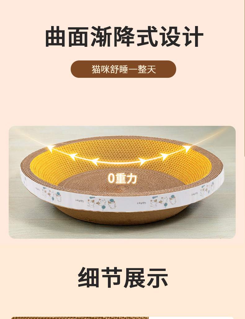 • 타원형 행복한 동물 고양이 스크래치 둥지 매체