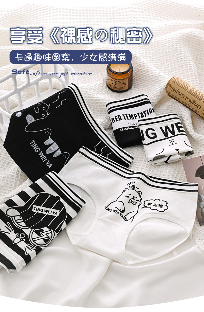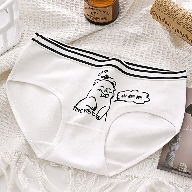 여성 속옷 달콤한 귀여운 만화 인쇄 여성의 중간 허리 일본 학생 반바지 덜 여성 브리프 통기성스토어 가기