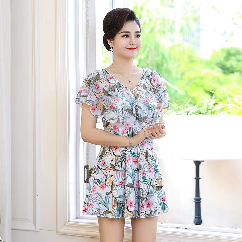 여성 수영복 대형 사이즈 원피스 사각팬티 플러스 사이즈 스커트 스타일 몸매 가리기 슬림 효과 패션 프린트 온천 수영복