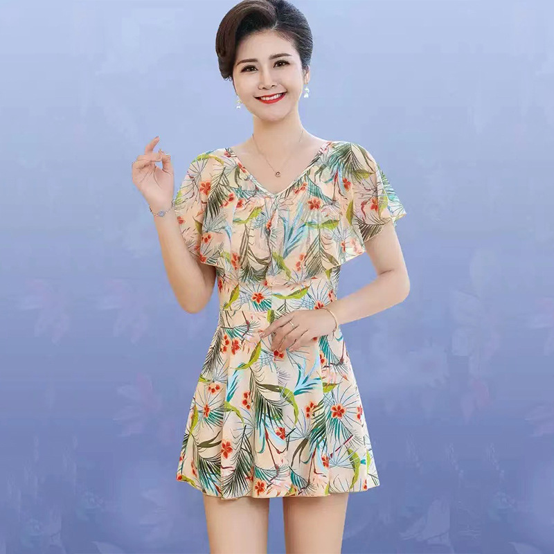 여성 수영복 대형 사이즈 원피스 사각팬티 플러스 사이즈 스커트 스타일 몸매 가리기 슬림 효과 패션 프린트 온천 수영복스토어 가기