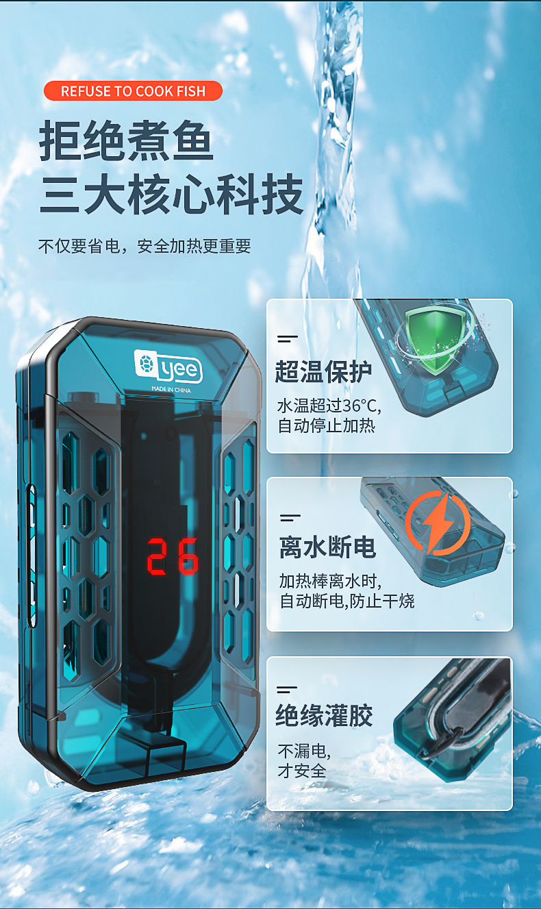 Yeee 거북이 가열로드 어항 히터 자동 온도 조절기 지능형 폭발 방지 낮은 수위 미니 가열 막대