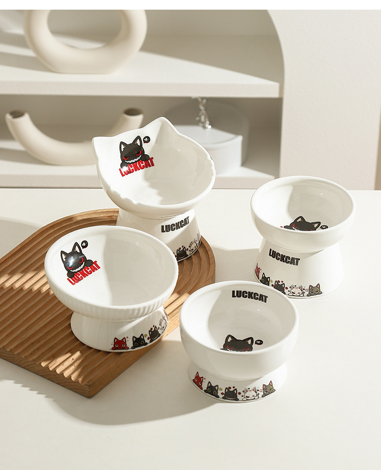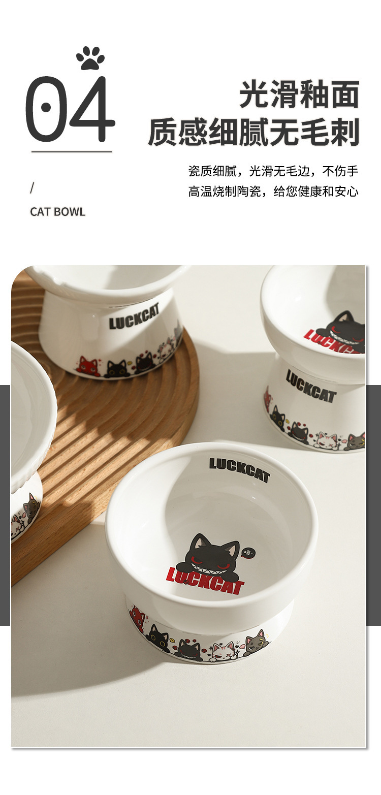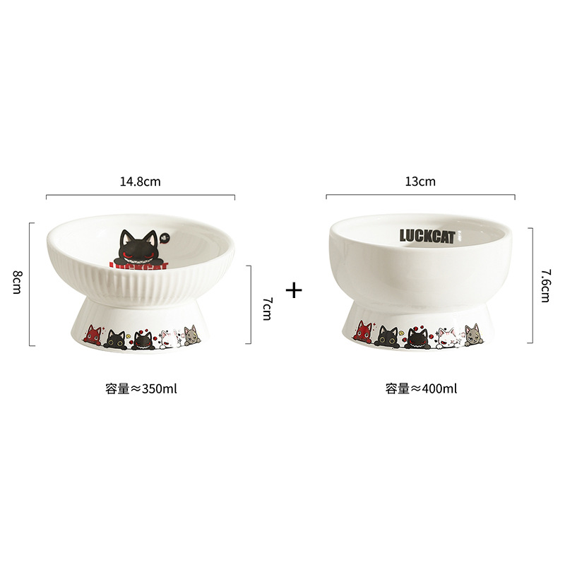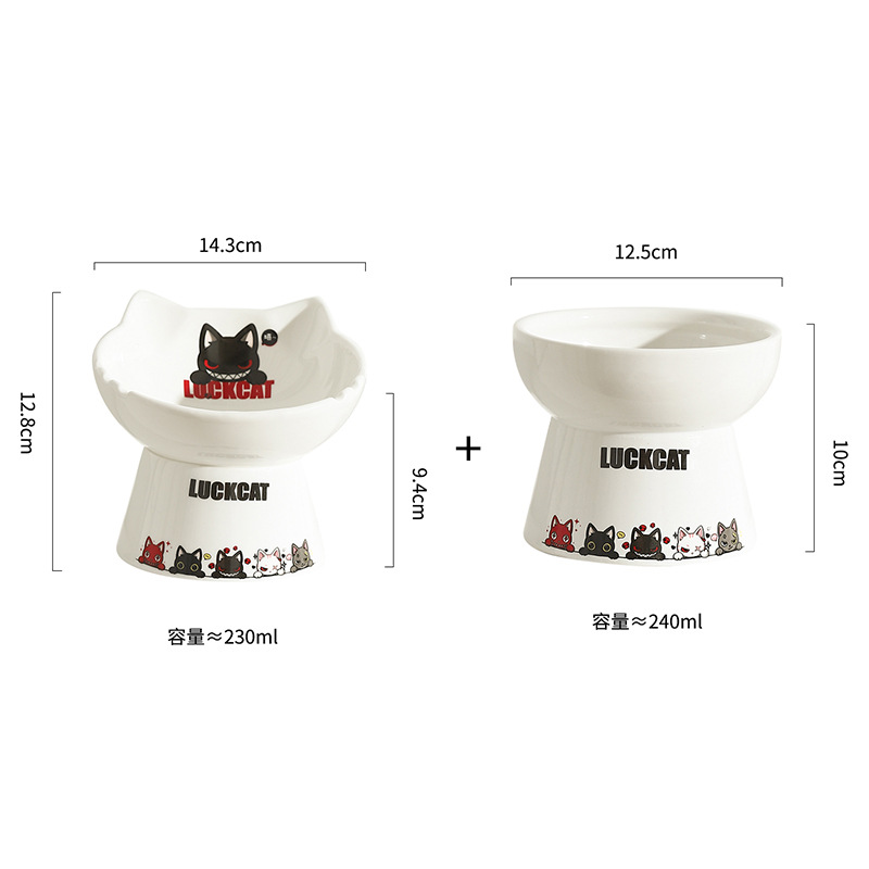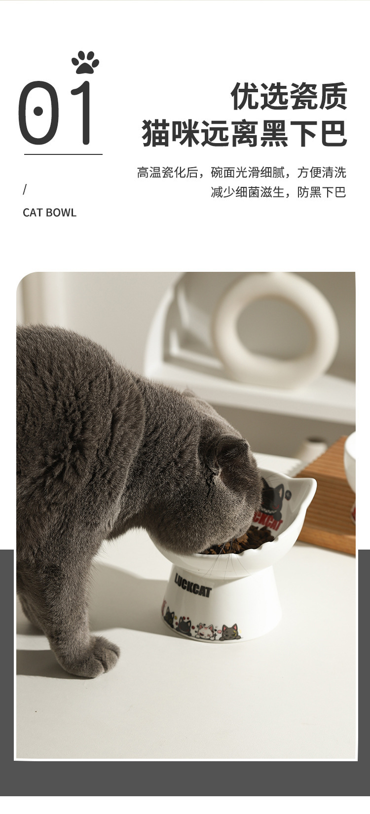LUCKCAT 고양이 그릇 세라믹 보호 자궁 경부 척추 마시는 그릇 귀여운 비스듬한 입 안티 노크 애완 동물 밥 그릇 고양이 먹이 그릇