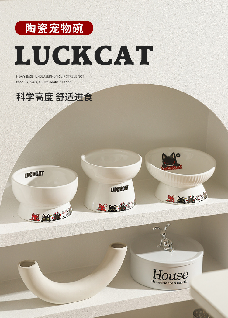 LUCKCAT 고양이 그릇 세라믹 보호 자궁 경부 척추 마시는 그릇 귀여운 비스듬한 입 안티 노크 애완 동물 밥 그릇 고양이 먹이 그릇스토어 가기