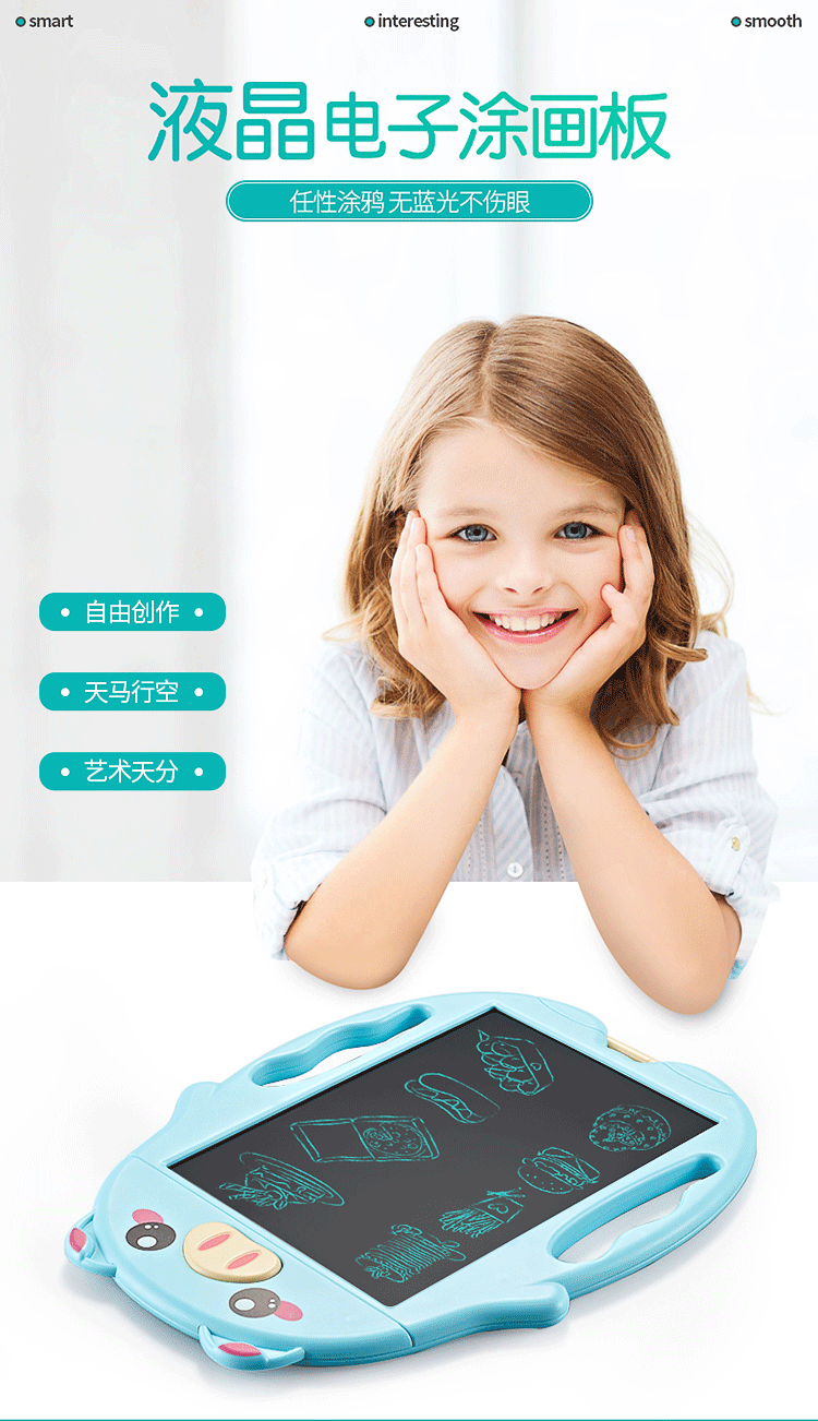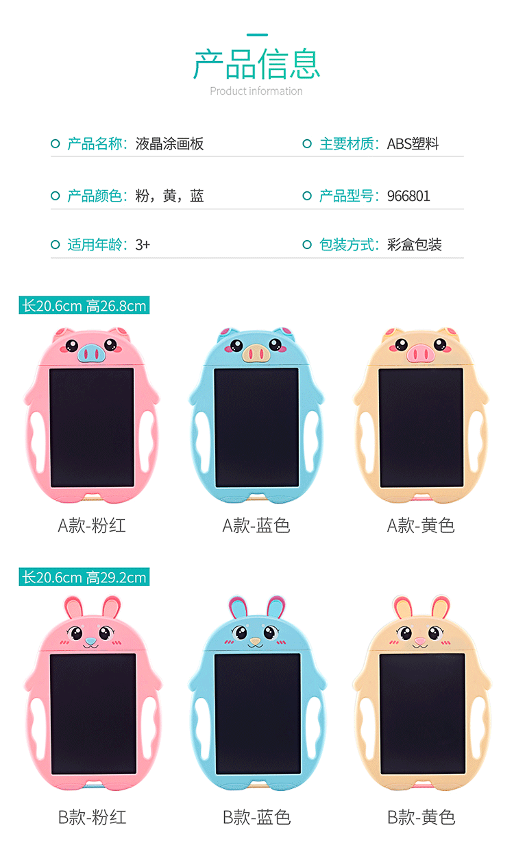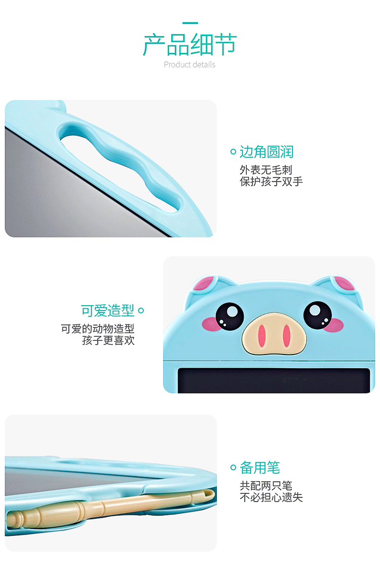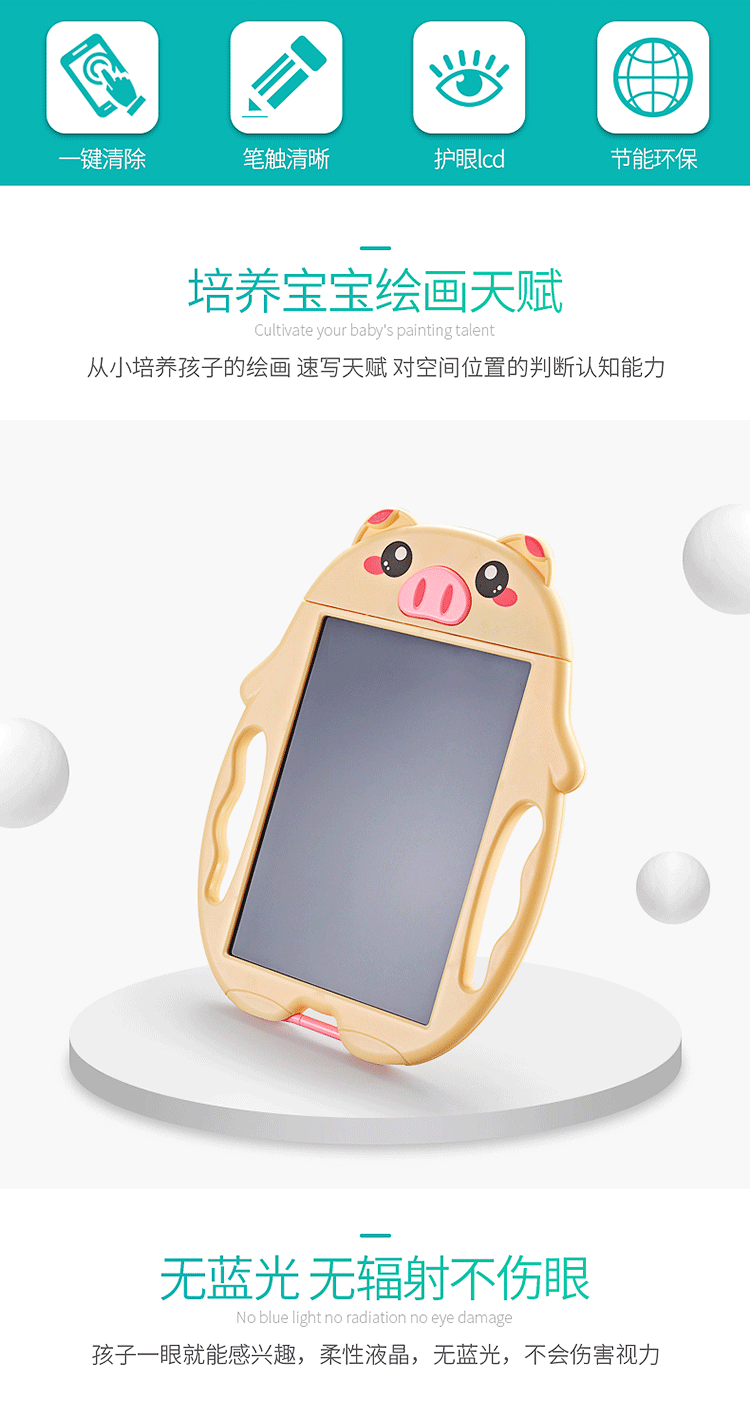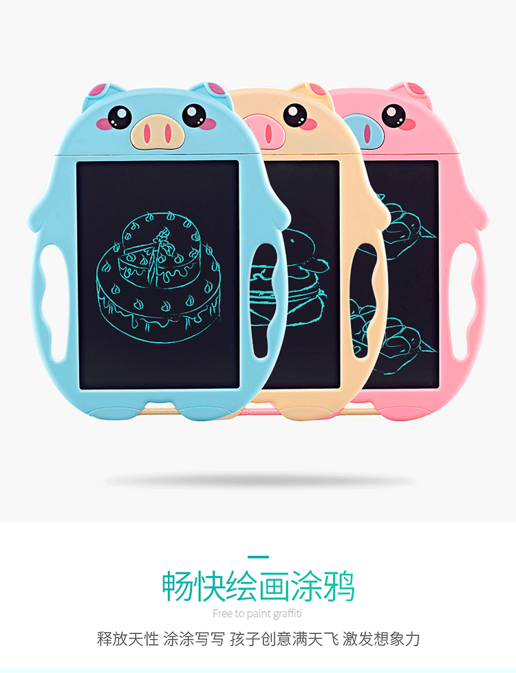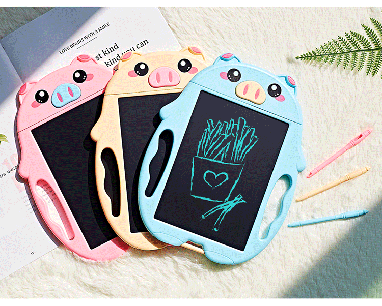 돼지 만화 LCD 전자 필기 보드 눈 보호 어린이 만화 드로잉 보드 낙서 서예 연습 교육 장난감 그림스토어 가기