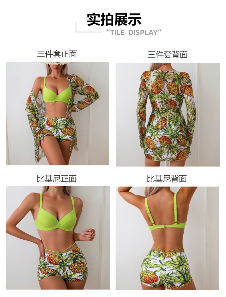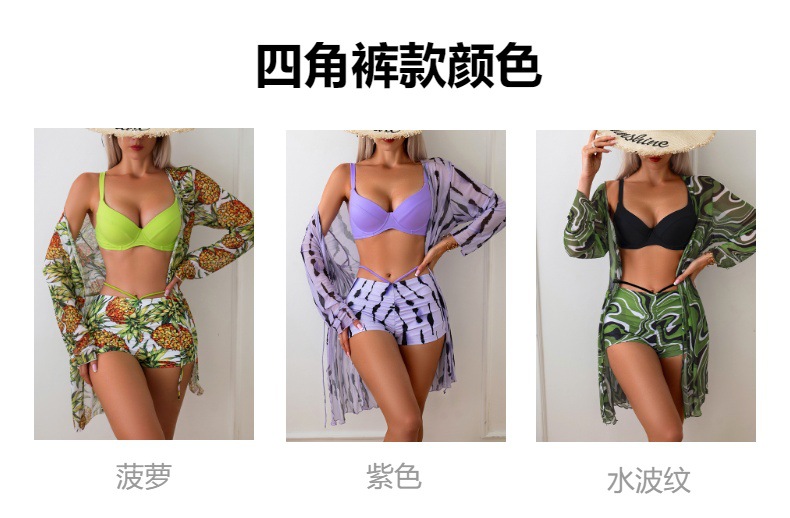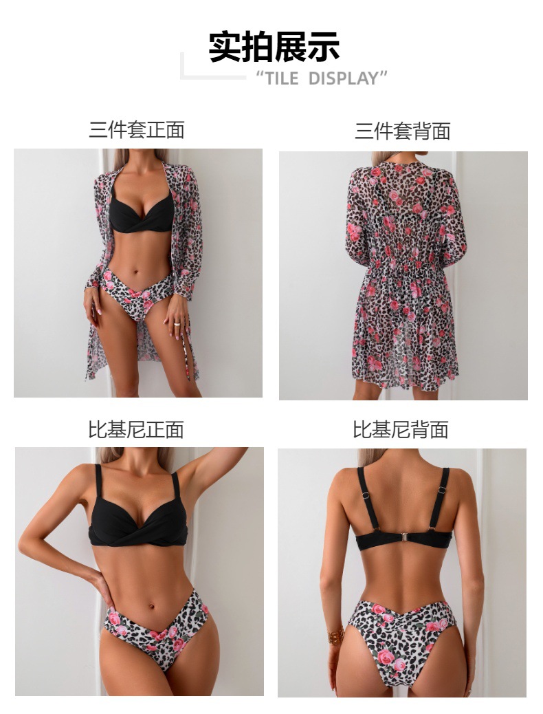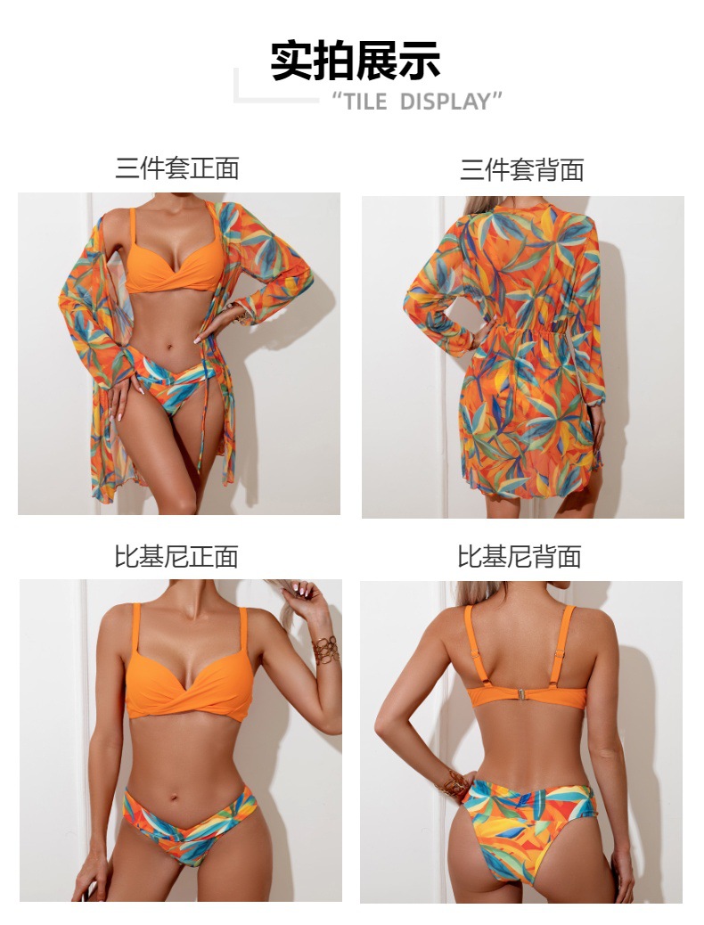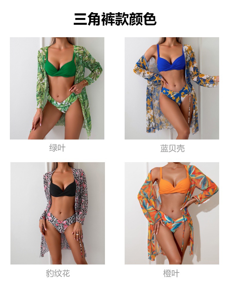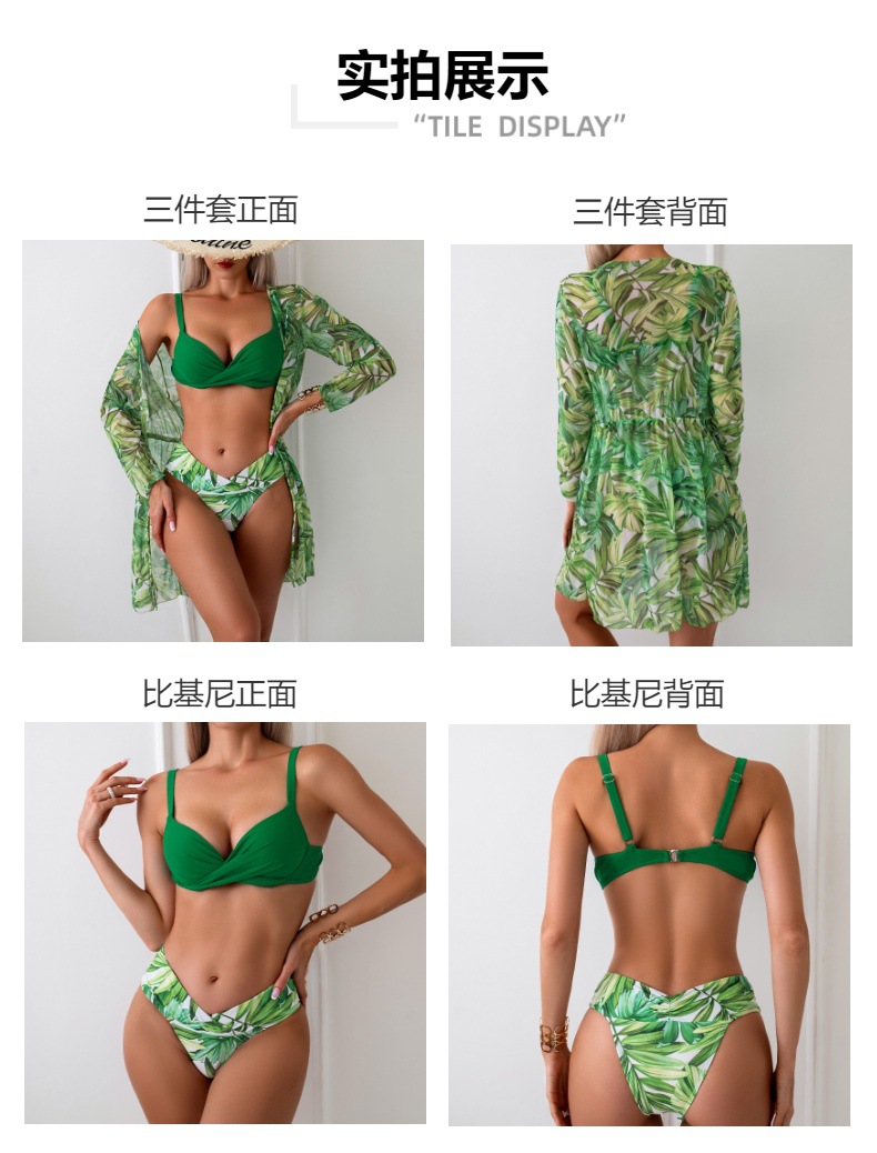 여성용 유럽 및 미국 스타일의 새로운 하드패드 비키니 3피스 세트, 긴팔 커버업, 수영복스토어 가기