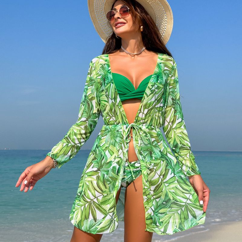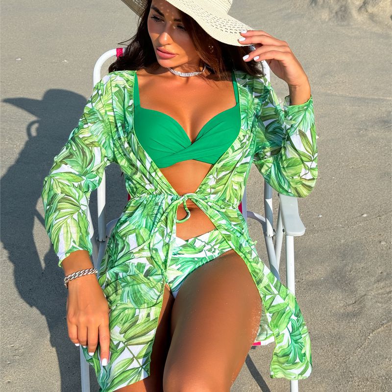 여성용 유럽 및 미국 스타일의 새로운 하드패드 비키니 3피스 세트, 긴팔 커버업, 수영복