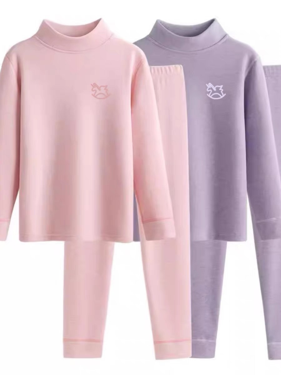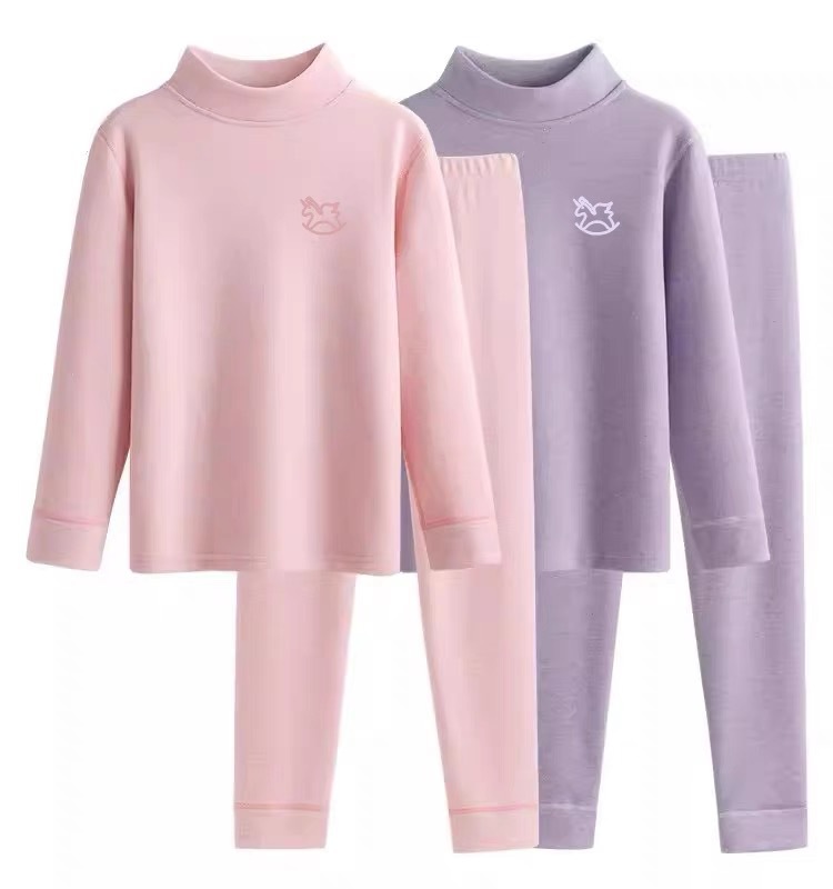 반 터틀넥과 두꺼운 벨벳 소녀들의 가을 옷 긴 바지 세트 미드 칼라 칫솔질 어린 이용 열 속옷