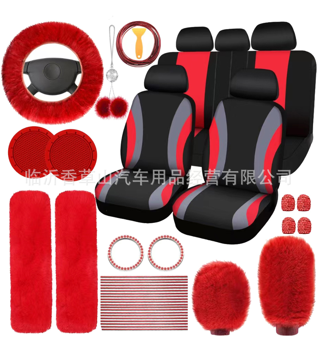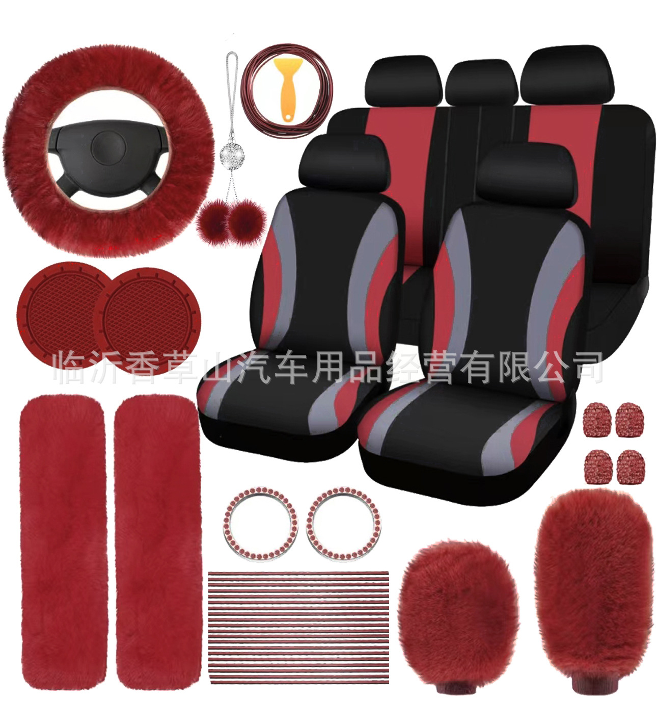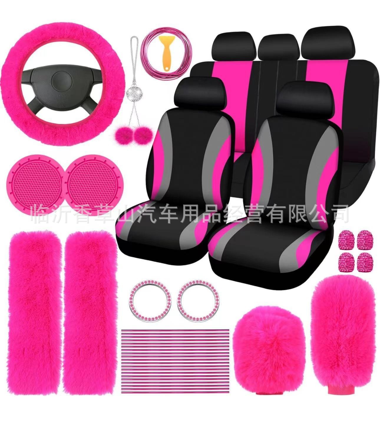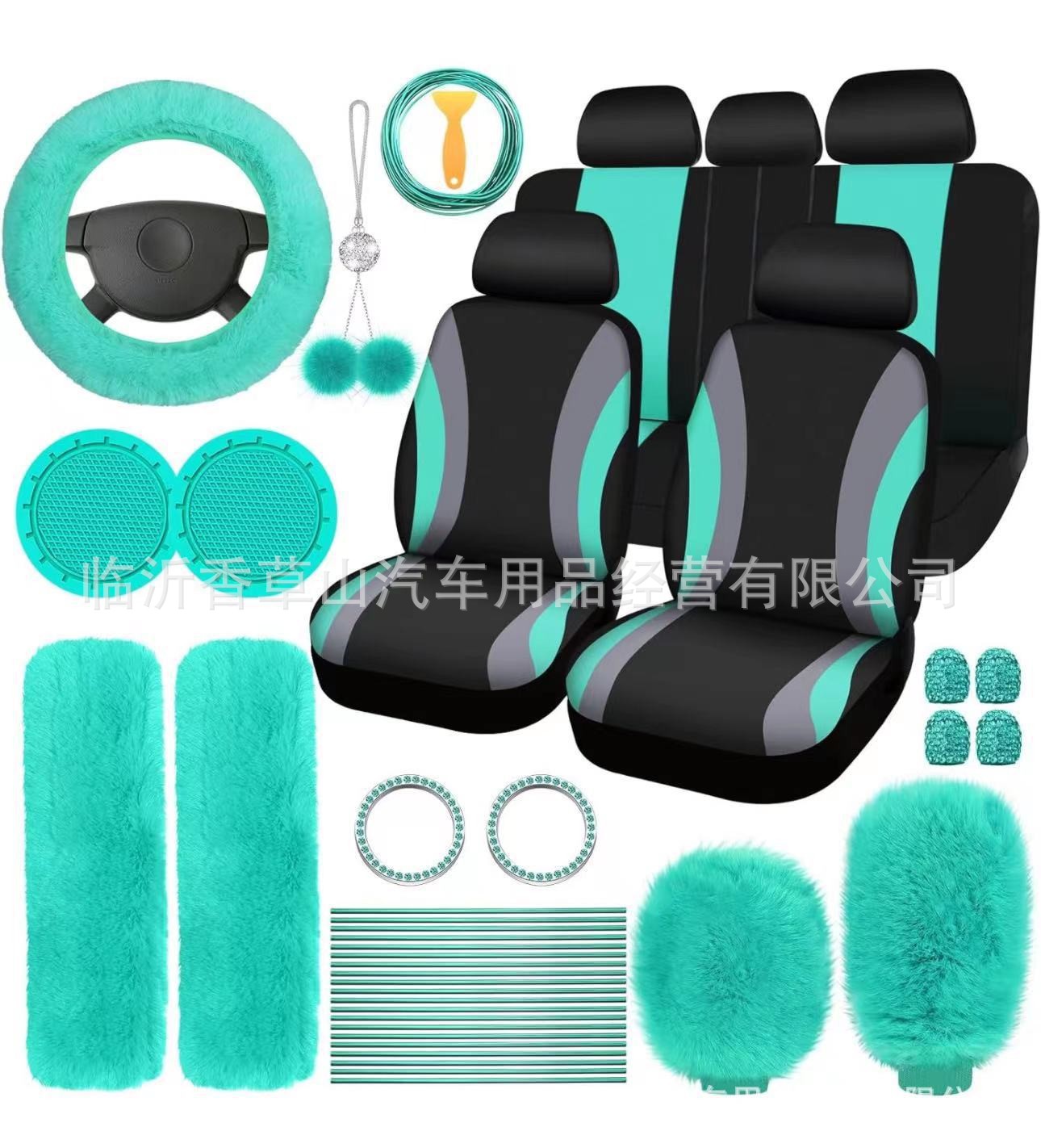 국경 간 자동차 인테리어 용품 자동차 스티어링 휠 커버 기어 커버 핸드 브레이크 커버 숄더 패드 장식품 장식 라인 45 피스 세트