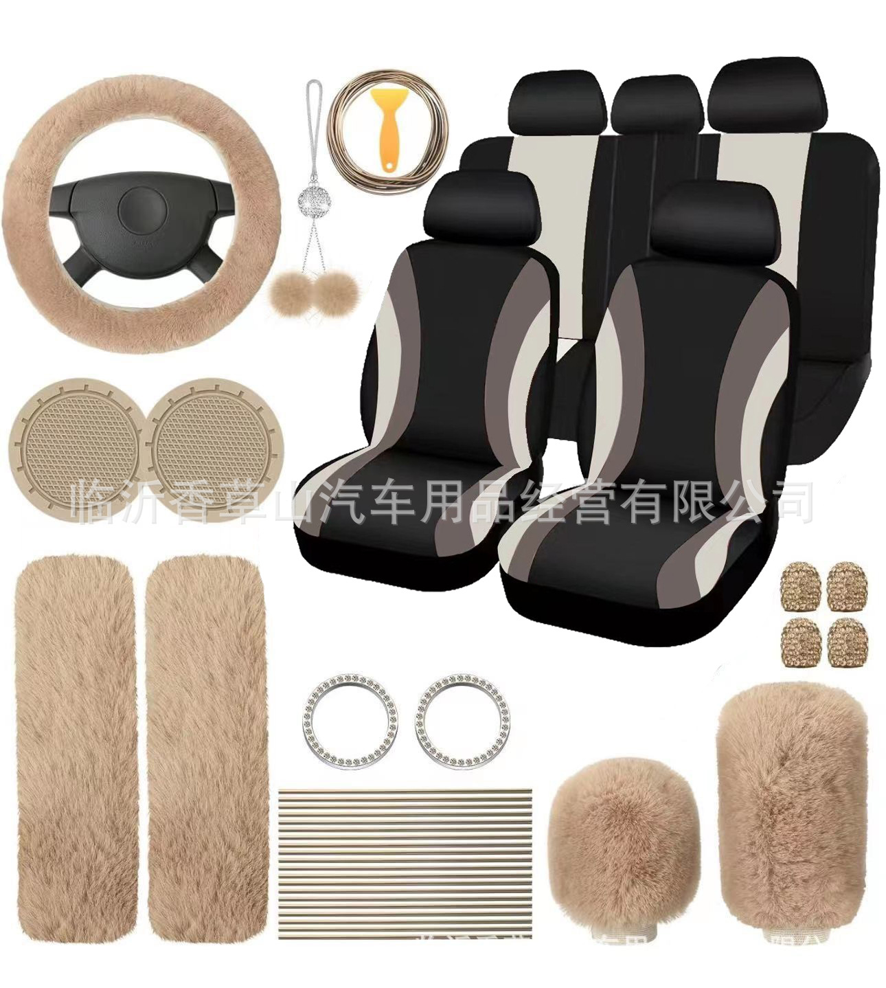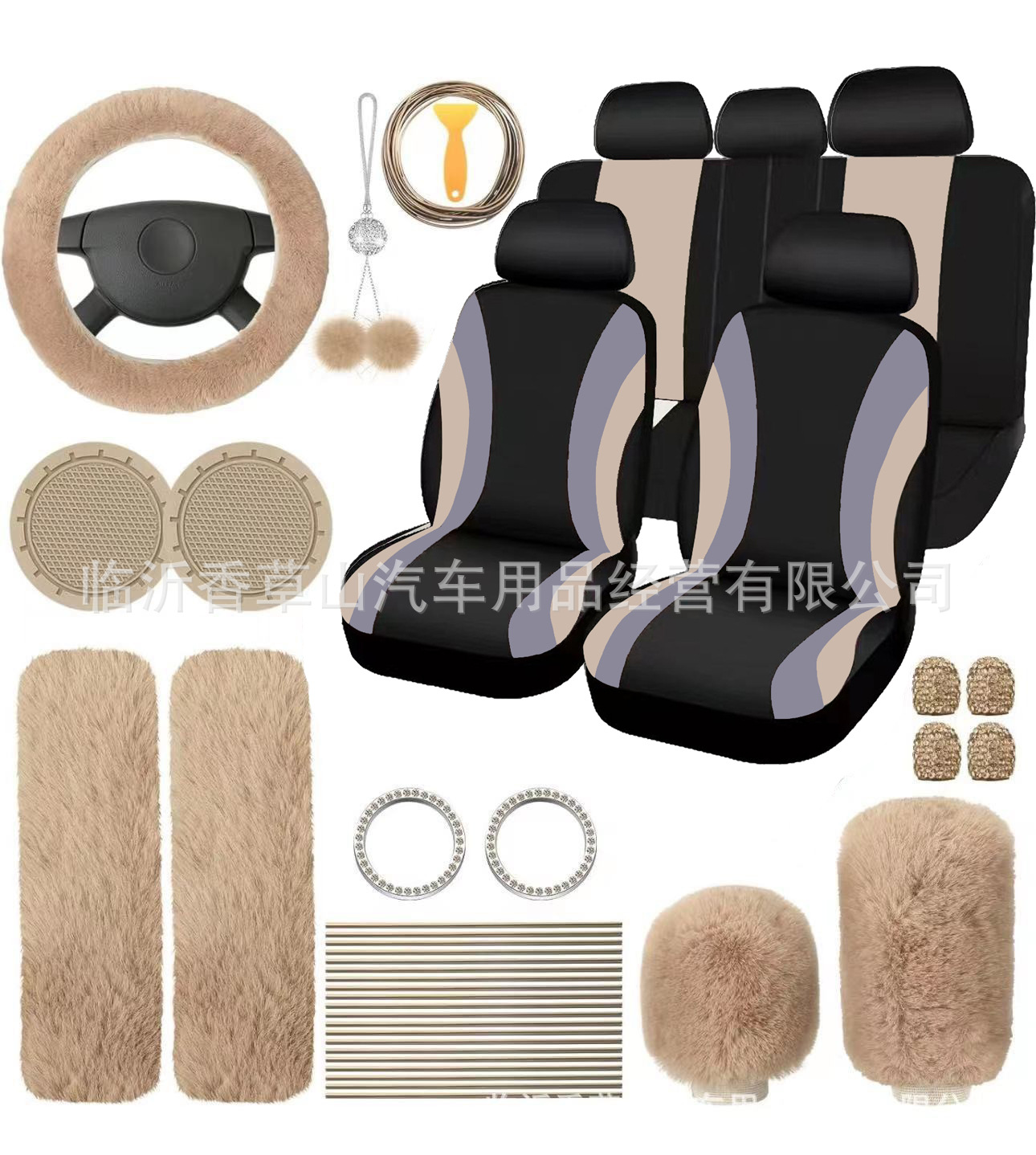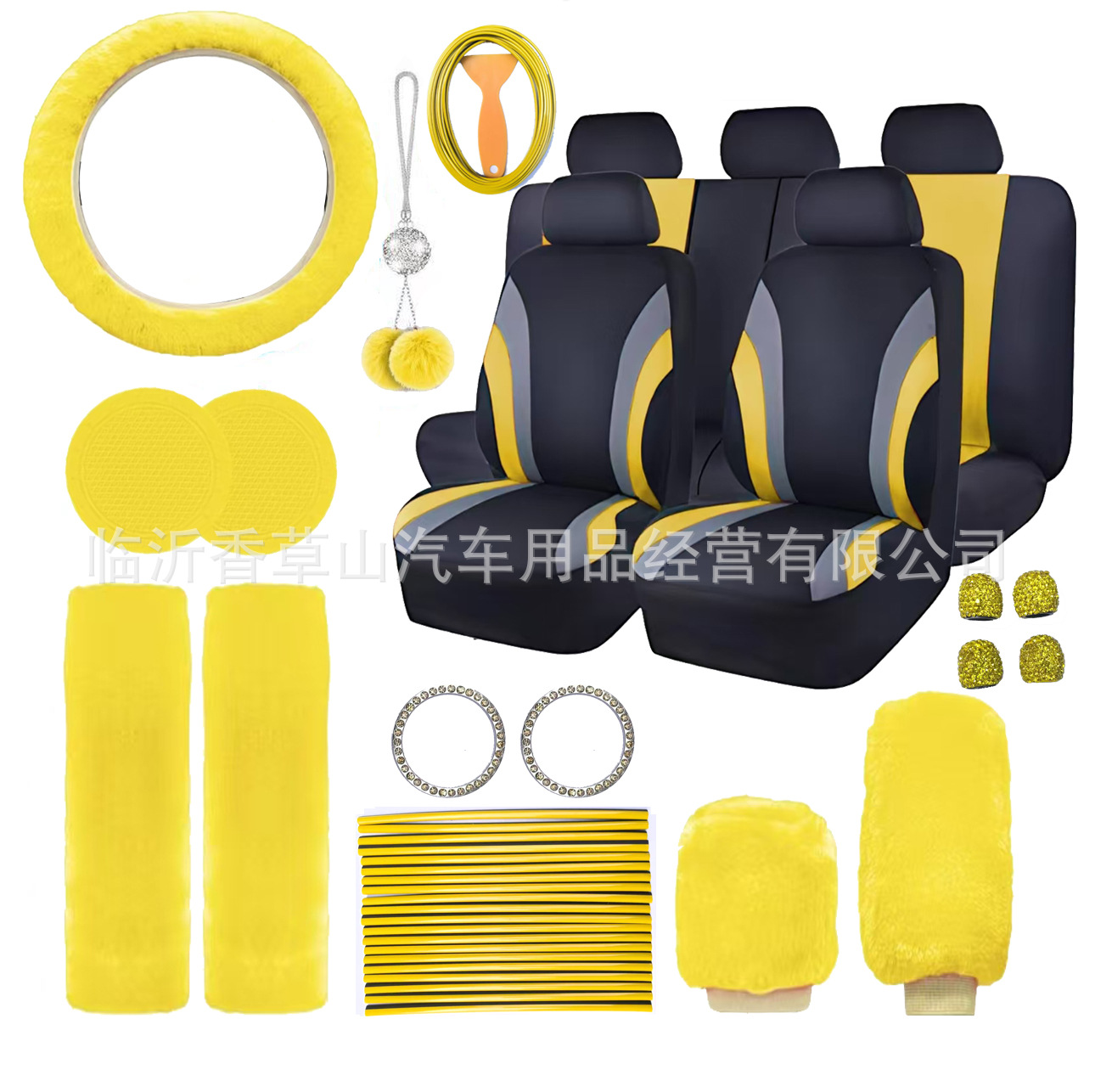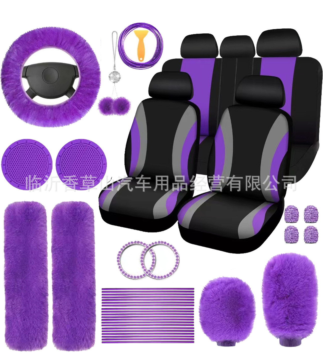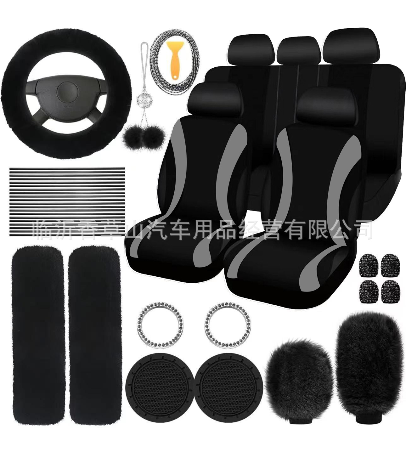 국경 간 자동차 인테리어 용품 자동차 스티어링 휠 커버 기어 커버 핸드 브레이크 커버 숄더 패드 장식품 장식 라인 45 피스 세트