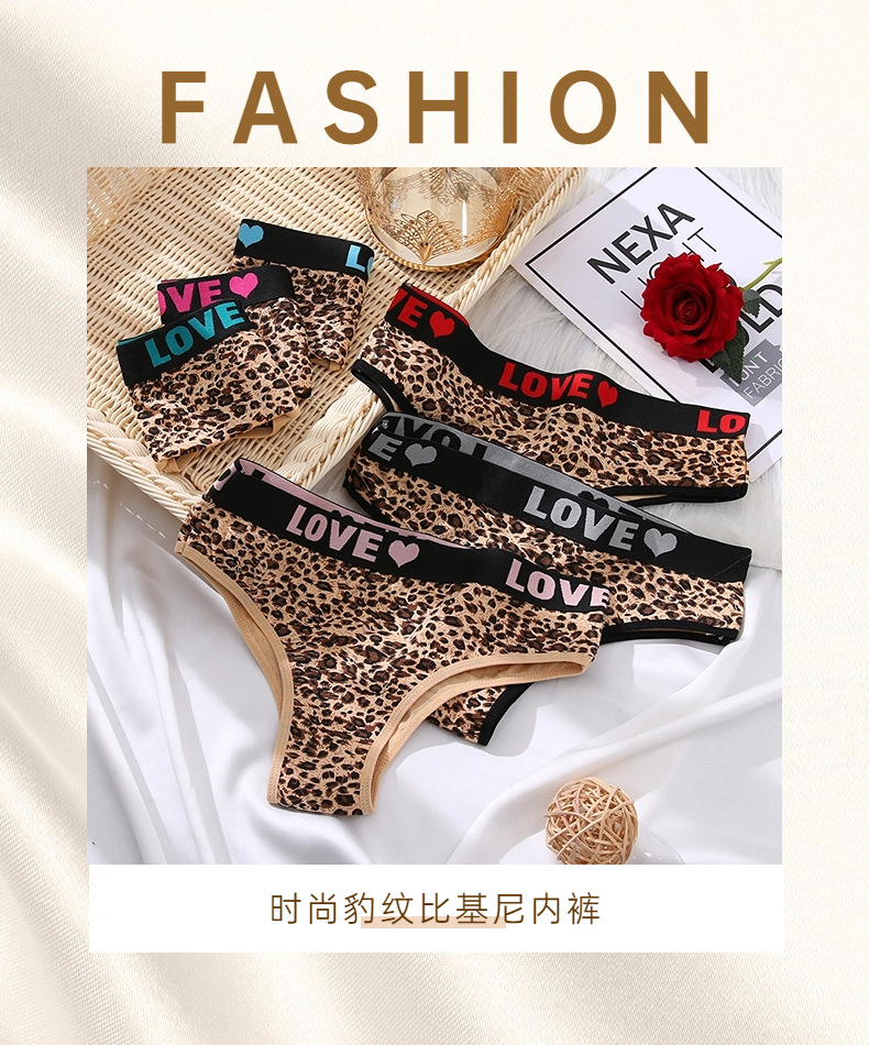 국경 간 레오파드 무늬 면화 속옷 여성의 낮은 허리 섹시한 유럽과 미국의 비키니 패션 편지 여성의 끈 통기성 편안한스토어 가기