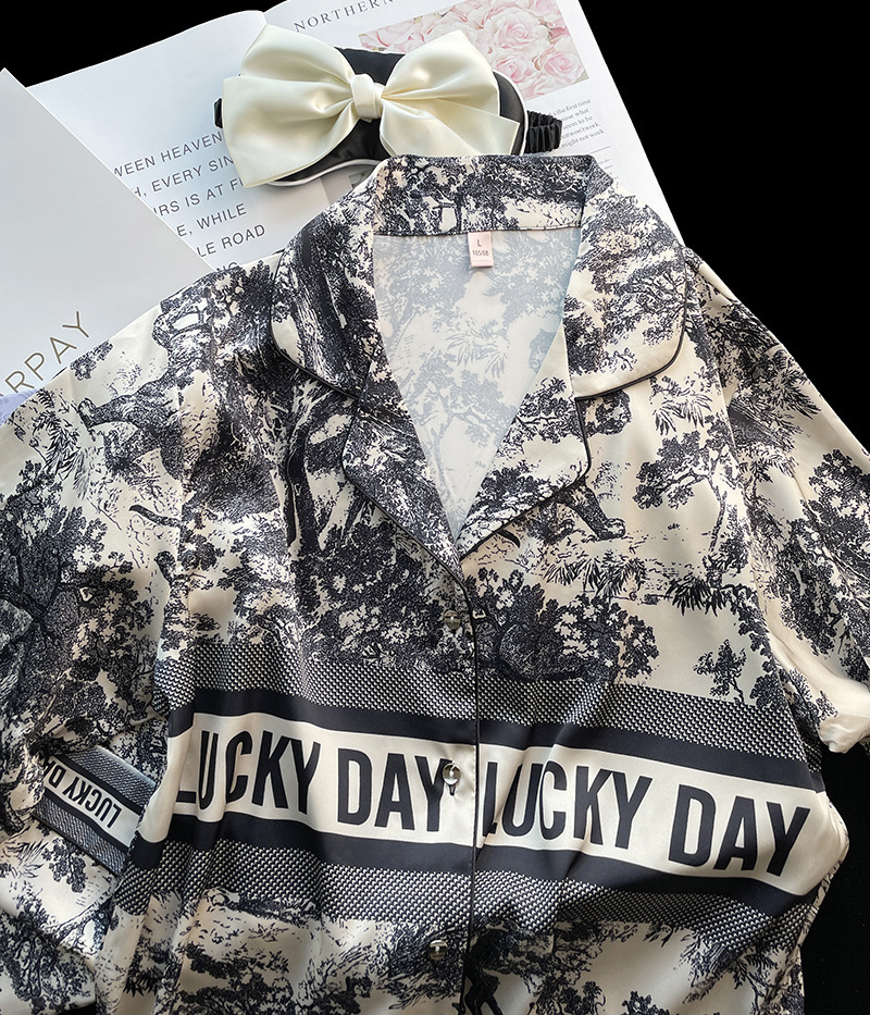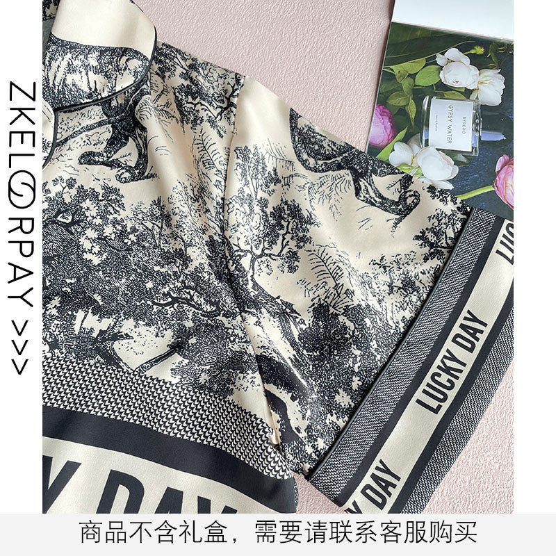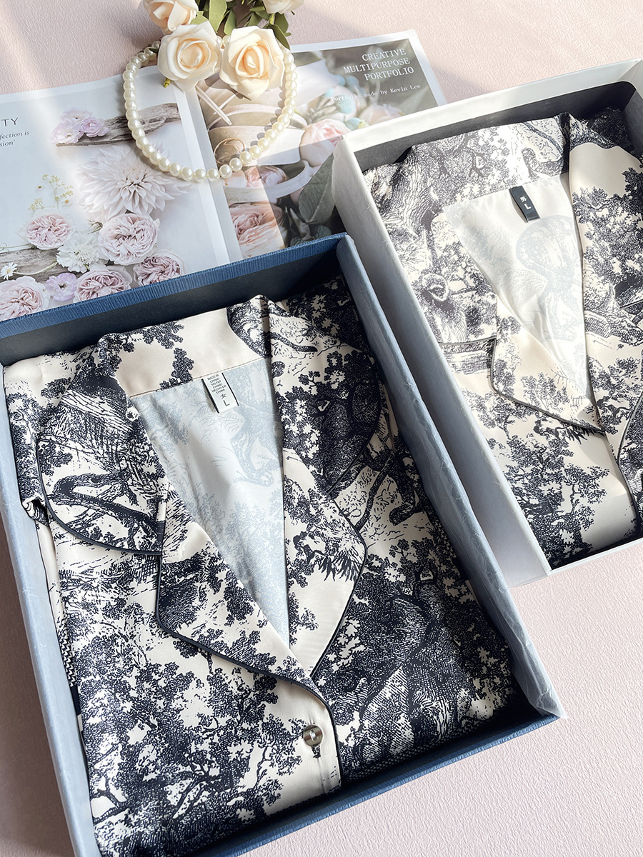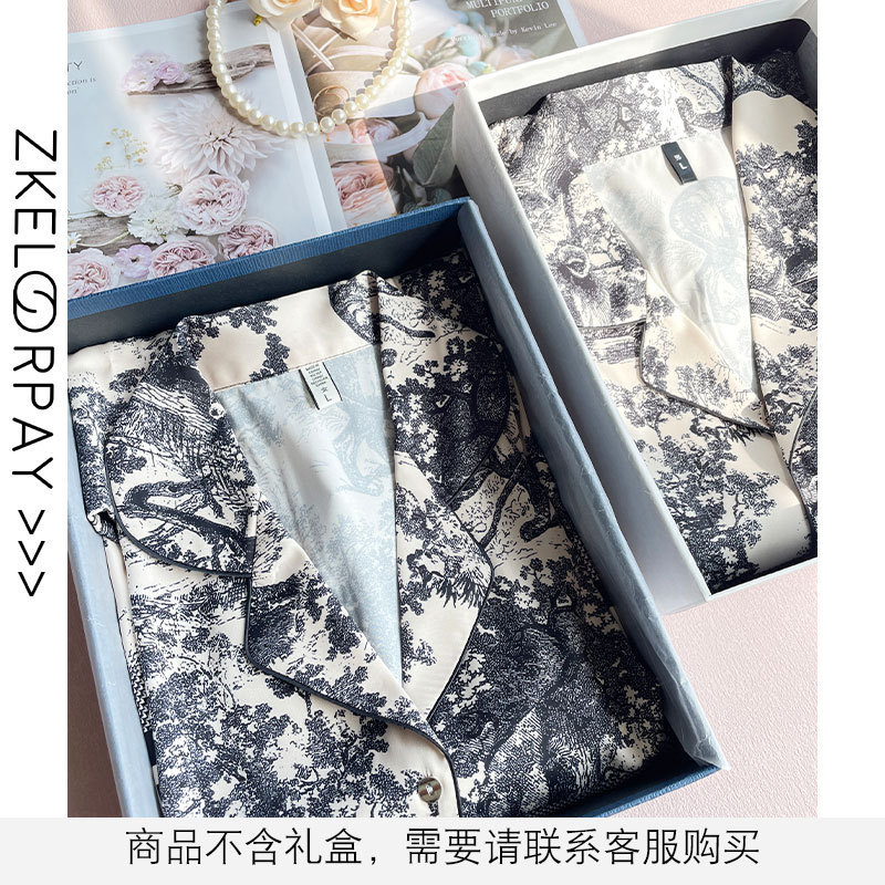 봄과 가을 커플 아이스 실크 잠옷 여성 라이트 럭셔리 크로스 보더 잉크 시뮬레이션 실크 여름 작은 빨간 책 같은 스타일 가정복 남성스토어 가기
