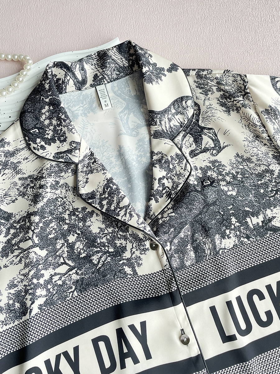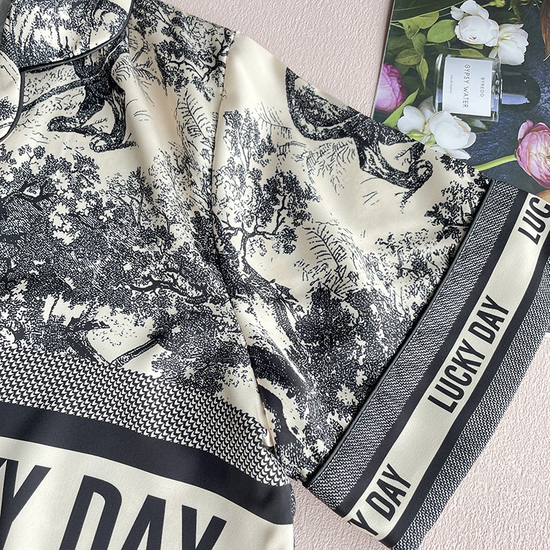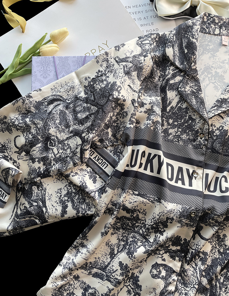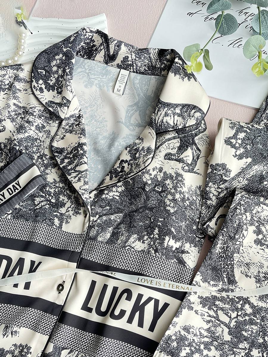 봄과 가을 커플 아이스 실크 잠옷 여성 라이트 럭셔리 크로스 보더 잉크 시뮬레이션 실크 여름 작은 빨간 책 같은 스타일 가정복 남성스토어 가기
