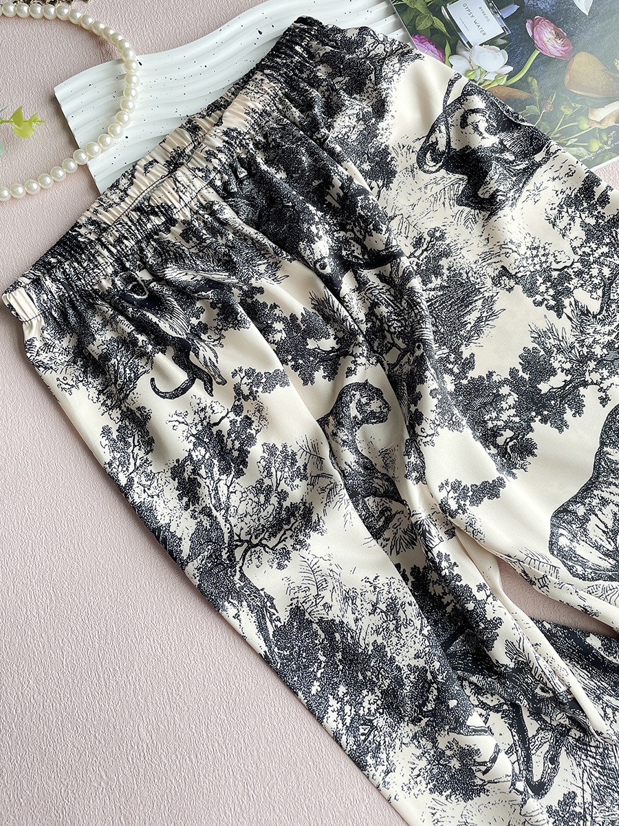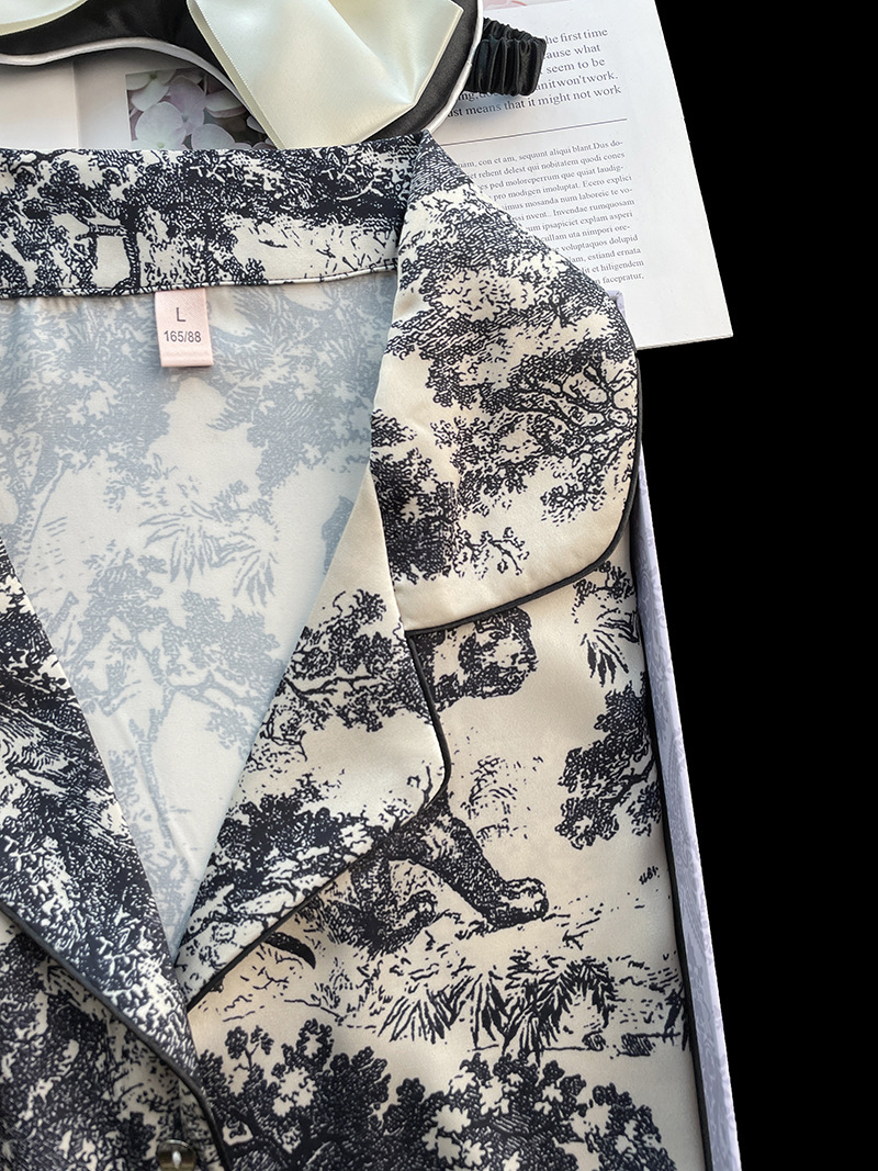 봄과 가을 커플 아이스 실크 잠옷 여성 라이트 럭셔리 크로스 보더 잉크 시뮬레이션 실크 여름 작은 빨간 책 같은 스타일 가정복 남성